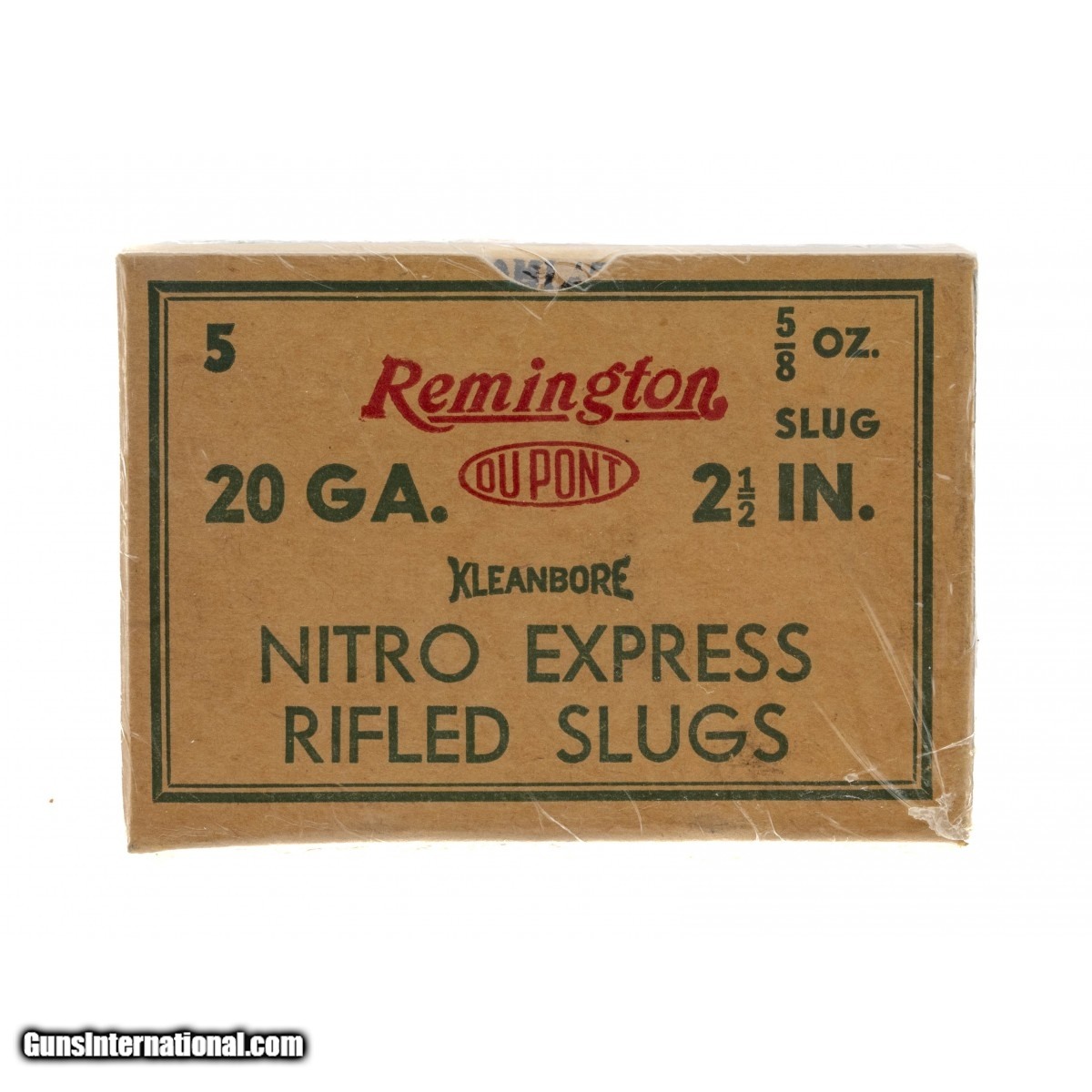 Description: " 20Ga. Nitro Express Rifled Slugs 5\8 OZ By Remington Kleanbore. Full Box of 5 Shells. SOLD |