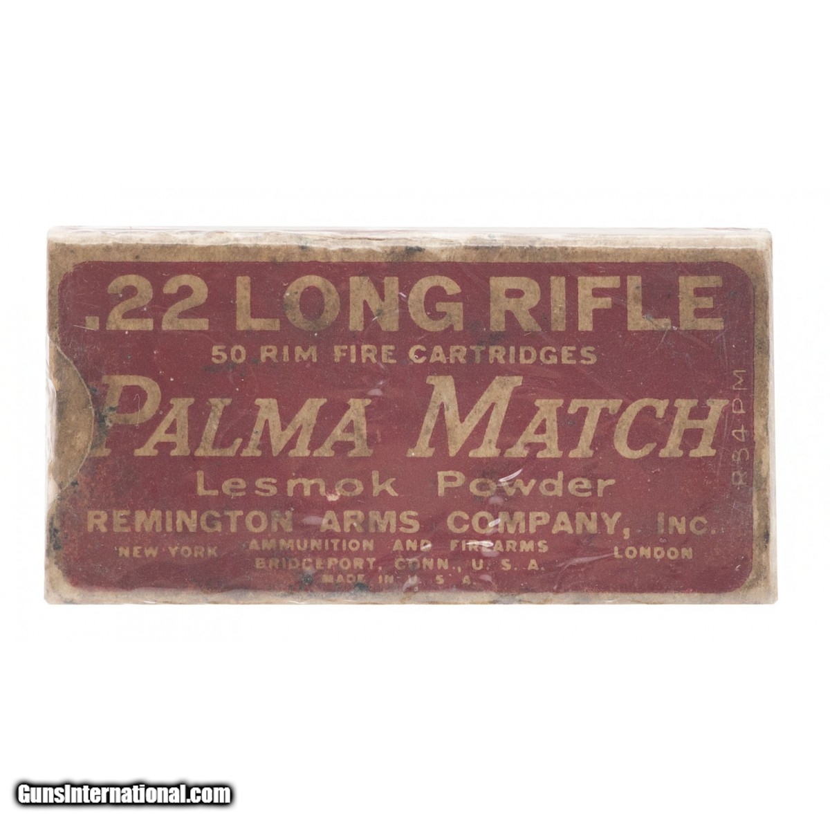 Description: " .22LR Palma Match Cartridges by Remington UMC. Partial Box of 30%. SOLD |