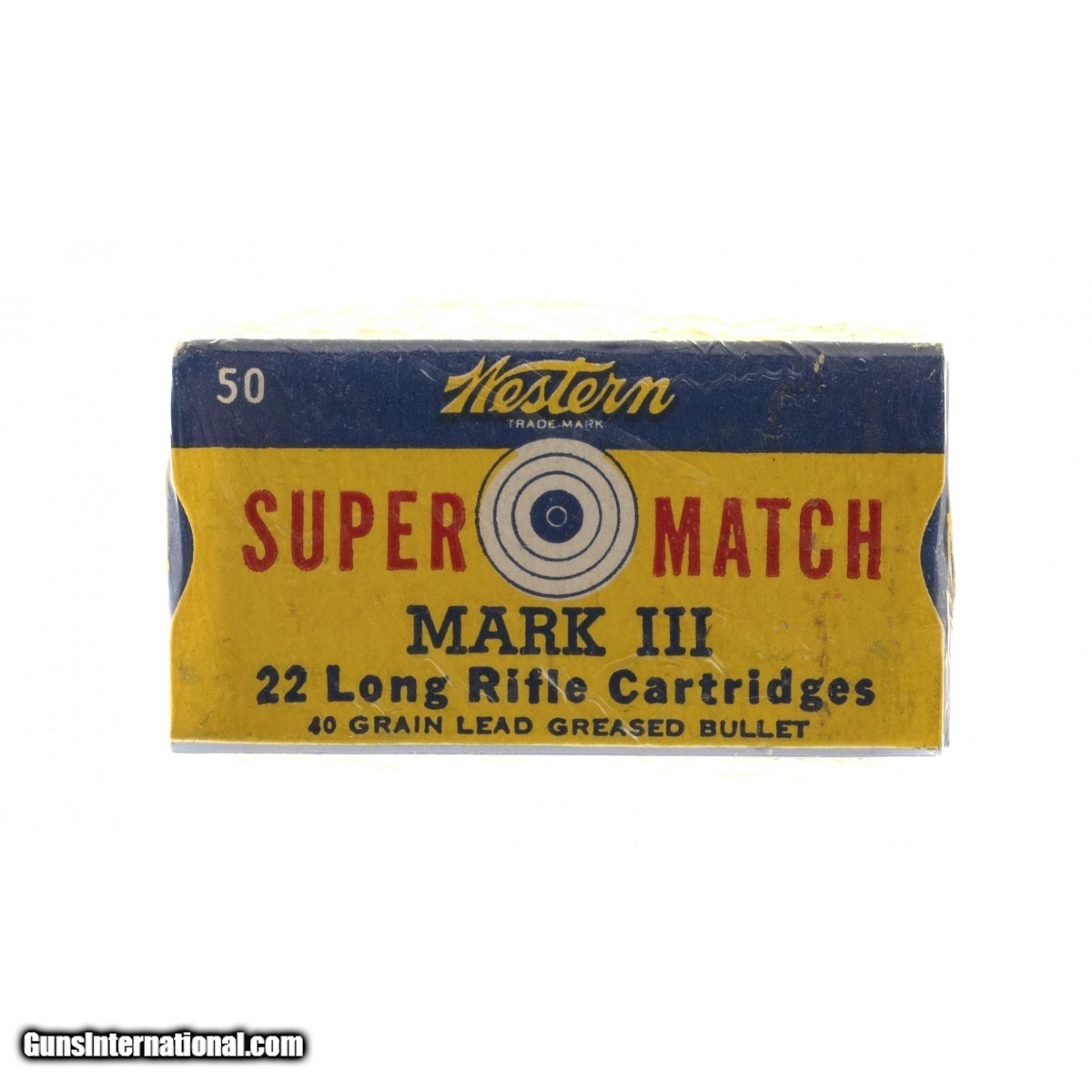 Description: " 22LR Super Match MKIII Rifle Cartridges By Western. Excellent Colorful Box of 50.Out Of Brick. SOLD |