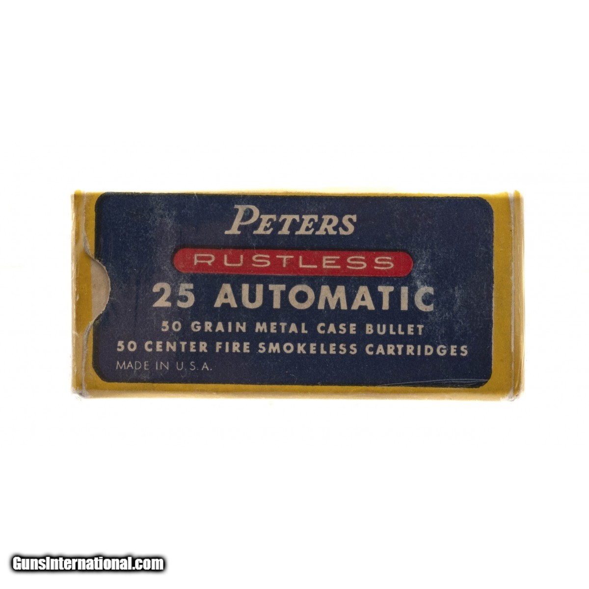 25 Automatic 50gr. Rustless Metal Case Bullet By Peters Cartridges. Full Box of 50.