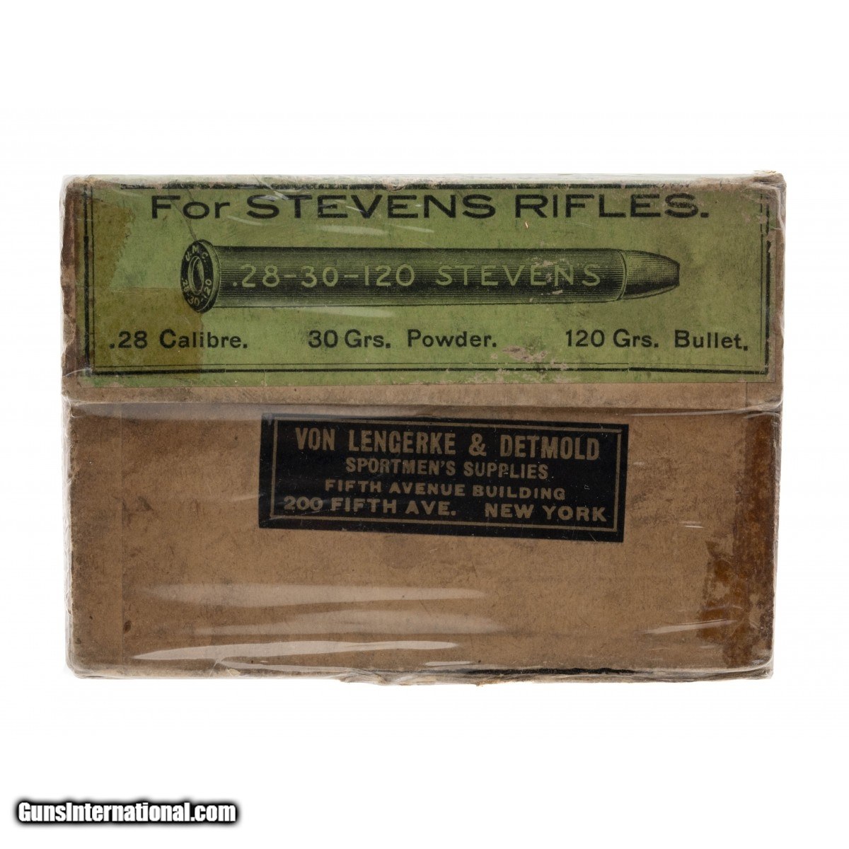 .28-30-120 Stevens Rifle Cartridges. .28 Cal. 30grs Powder 120grs Bullet. Full box of 20.