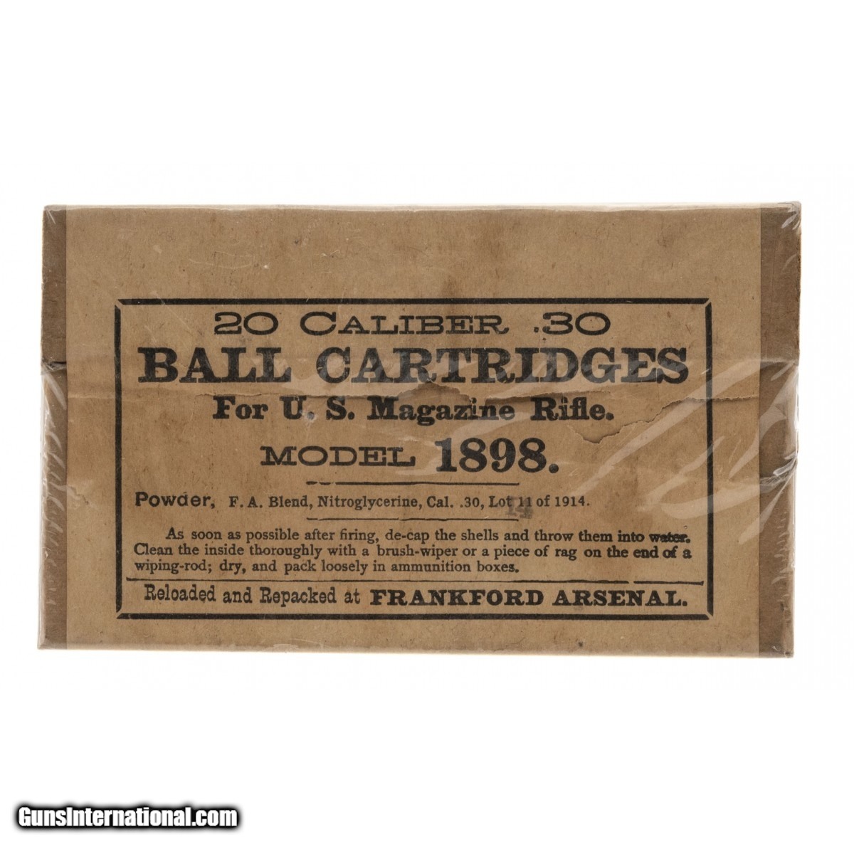 20 Caliber .30Ball Cartridges For US Magazine Rifle Model 1898. Full Box. Dated 1914