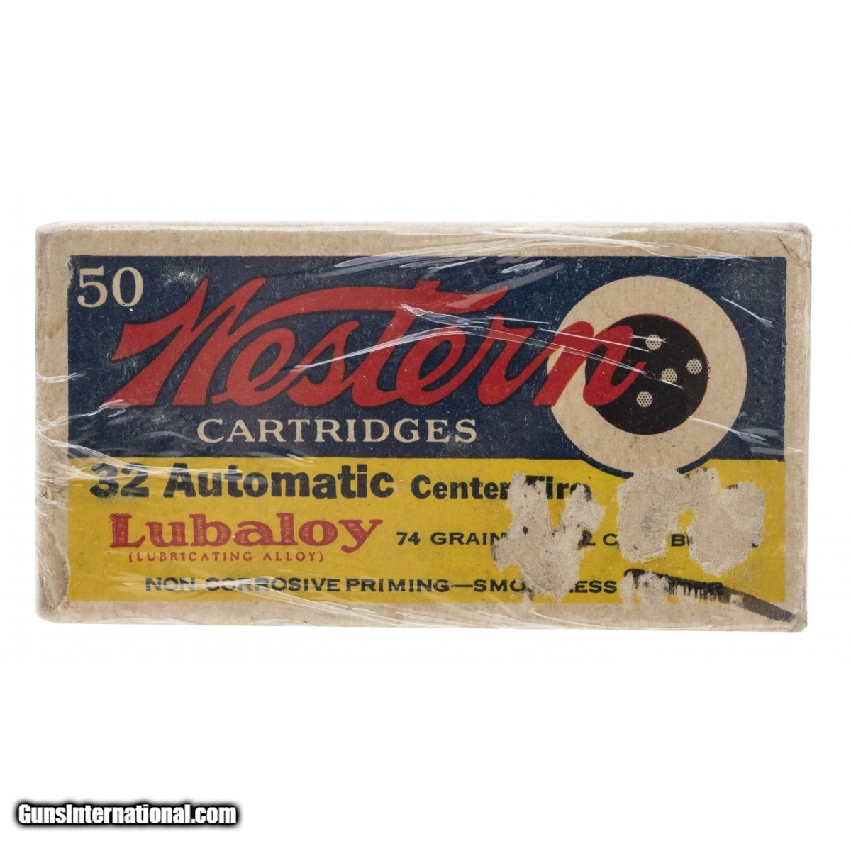 Description: " 32 Automatic C.F. Cartridges. Box Has 37 Western And 6 Winchester Marked Shells. SOLD |