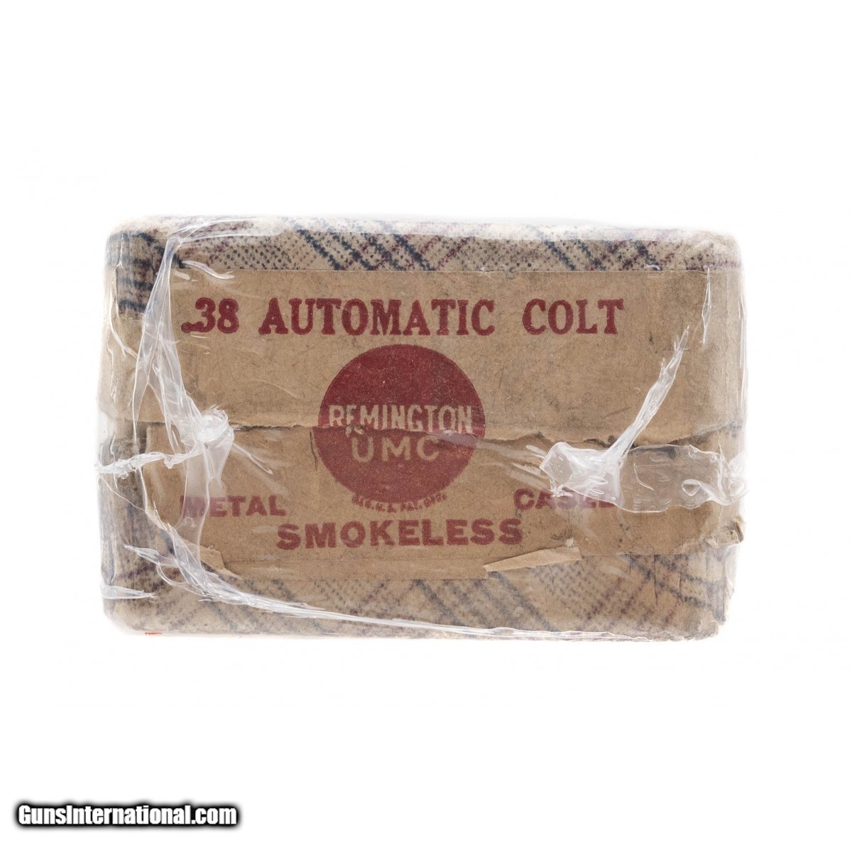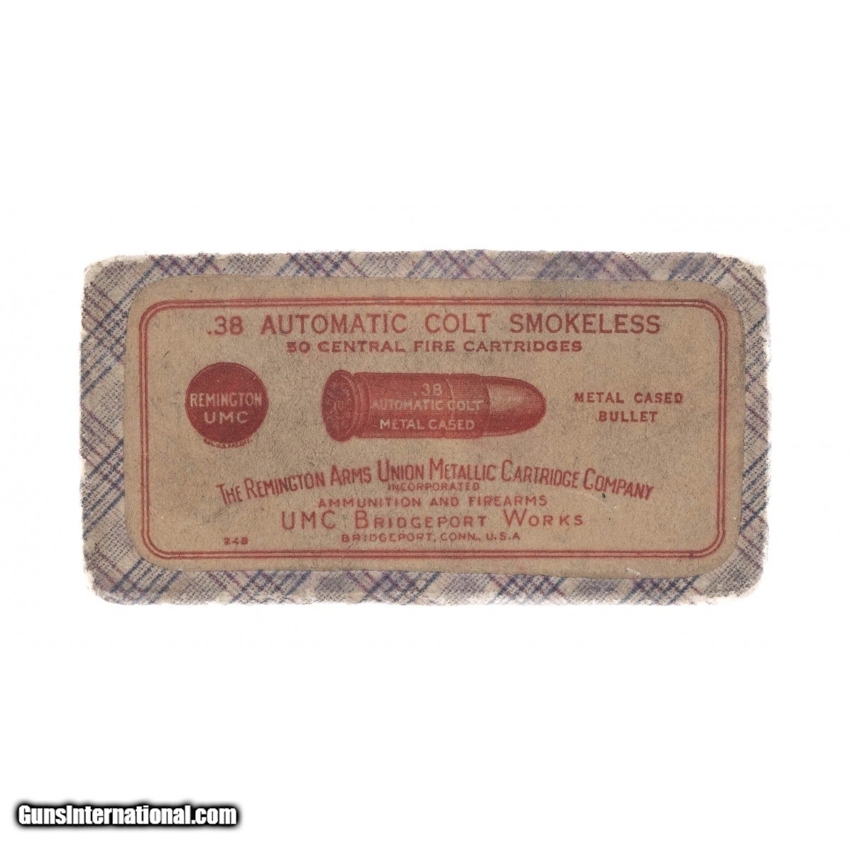 Description: " .38 Automatic Colt Pistol Cartridges by Rem. UMC. Full Picture Box of 50. SOLD |