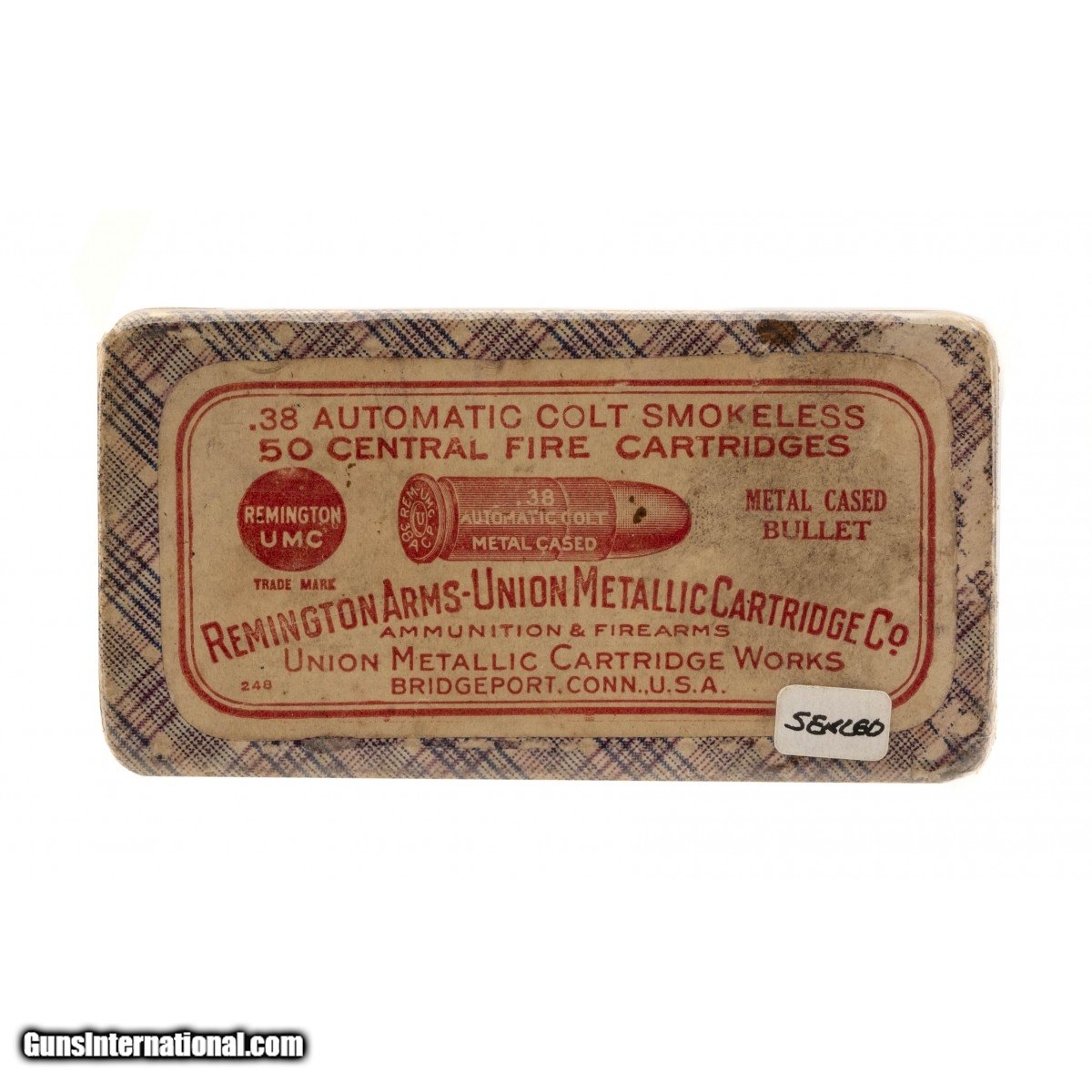 Description: " .38 Automatic Colt Smokeless CF Cartridges in Sealed Box of 50. SOLD |