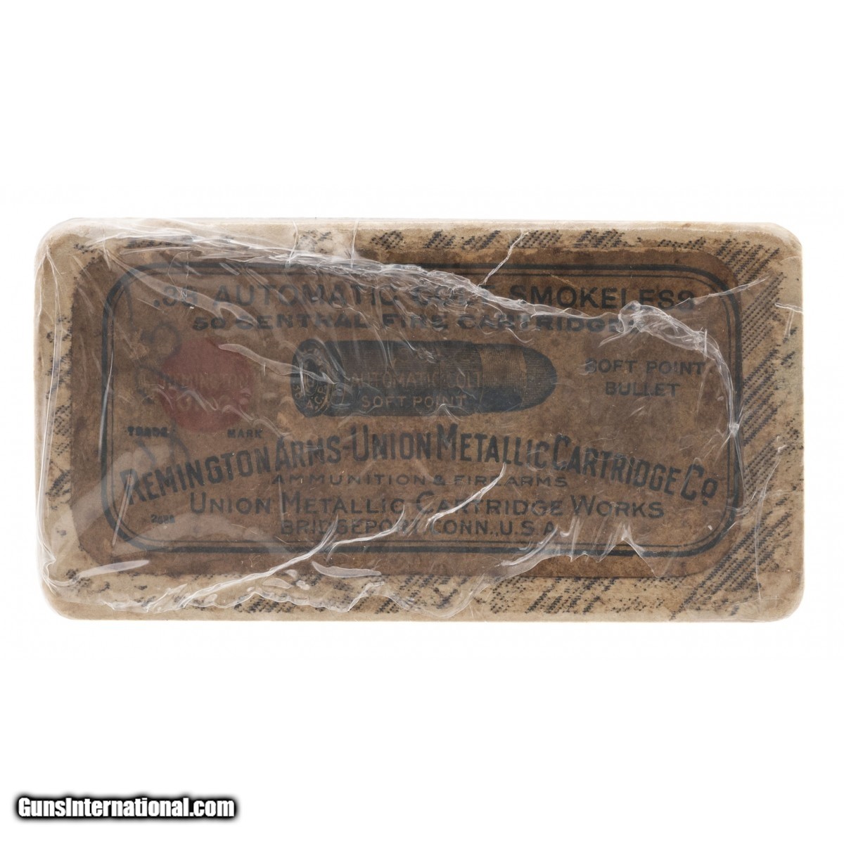 Description: " .38 Automatic Colt Cartridges in Partial Box of 10%. Made by Rem. UMC. SOLD |