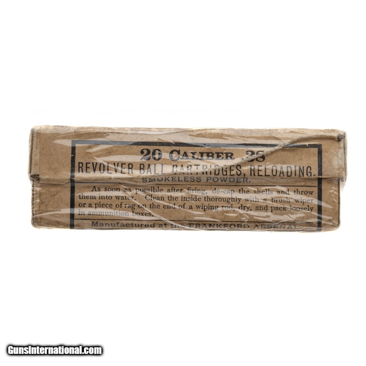 Description: ".38 Caliber Revolver Ball Cartridges from Frankford Arsenal. Unopened Box of 20. SOLD |