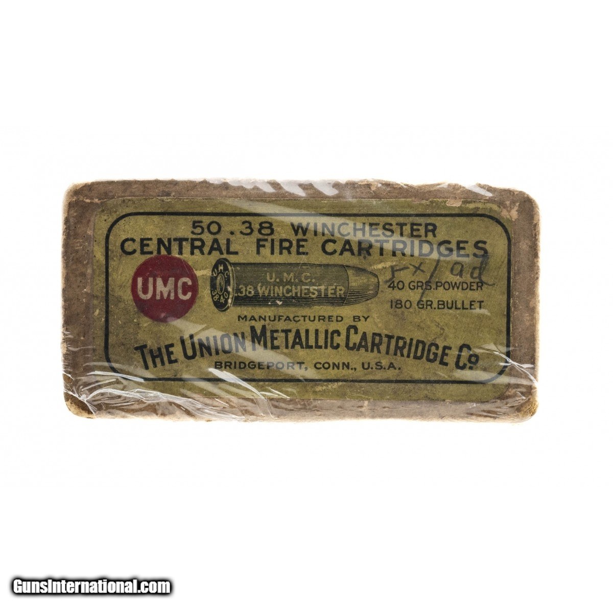 Description: "38-40 Winchester Central Fire Cartridges by UMC. Full Picture Box of 50. SOLD |