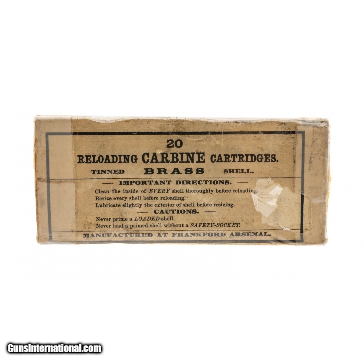 Description: "45-70 Reloading Carbine Cartridges. Tinned Brass Shell by Frankford Arsenal Dated 1888. Full Box. SOLD |