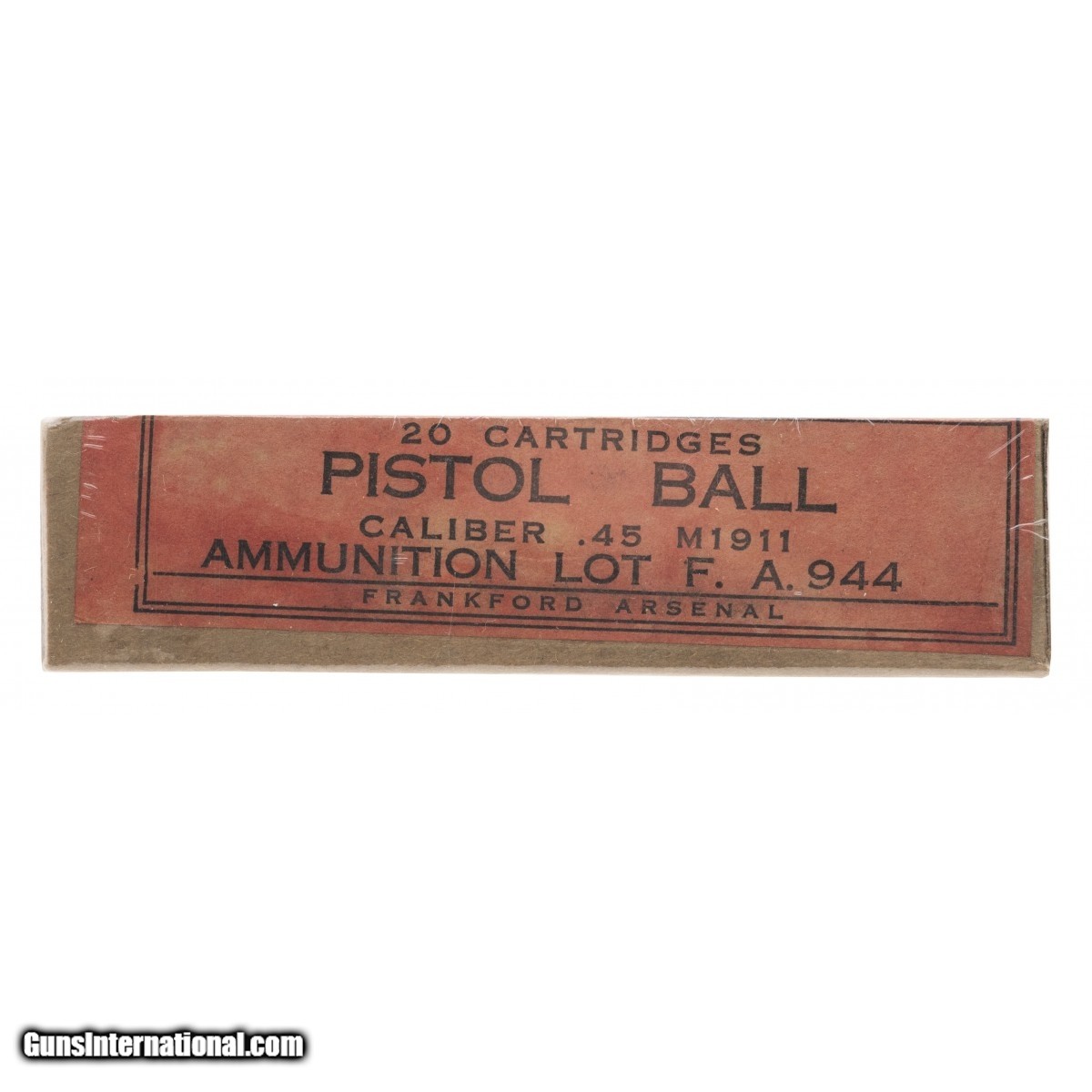 Description: " .45ACP 1911 Pistol Ball From Frankford Arsenal. Unopened Box of 20rds. SOLD |