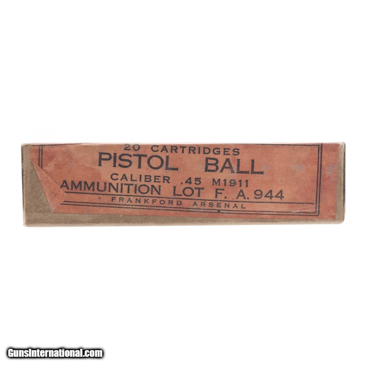 Description: " .45 ACP 1911 Pistol Ball from Frankford Arsenal. Unopened Box of 20 Cartridges. SOLD |