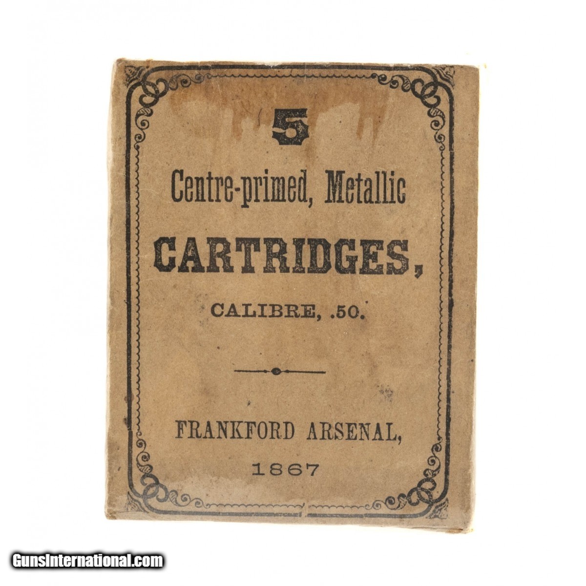 Description: "5 Centre-Primed Metallic Cartridges, Calibre .50 by Frankford Arsenal manufactured in 1867 in overall great condition. SOLD |