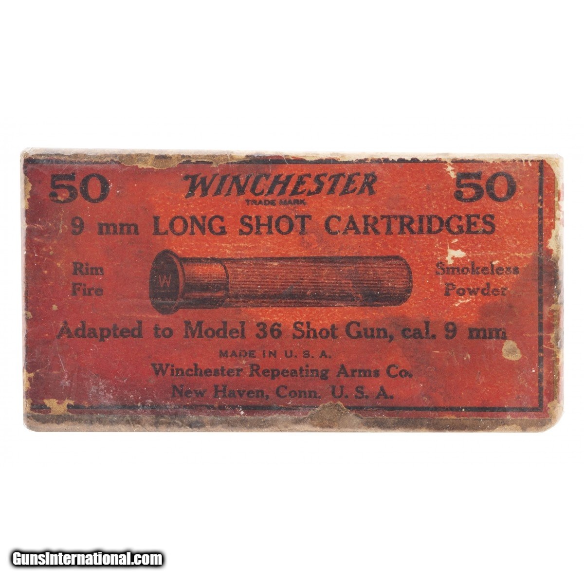 Description: " Partial Box of 10 9mm Long Shot Cartridges By Winchester. Adapted to Model 36 Shot Gun. SOLD |