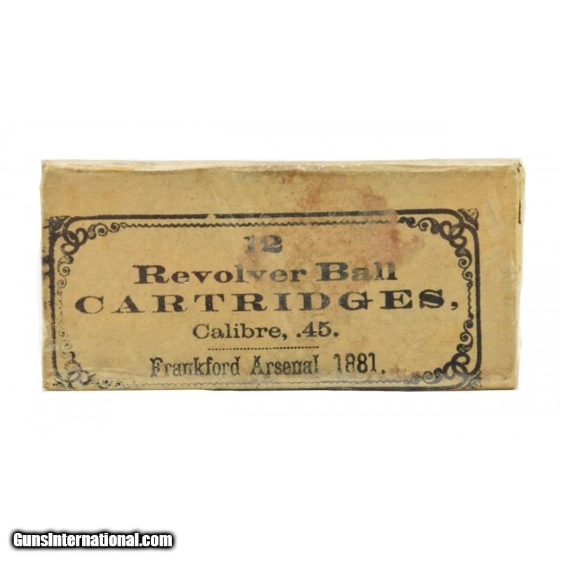 Description: " Frankford Arsenal 1881 Ammunition Packet. Ammunition Packet made on January 5th, 1881 by Frankford Arsenal. Ammunition sales are subject to special shipping pricing. Ammunition/Box purchased will be of same or similar quality as the box pictured in the listing. Limited Quantity. SOLD |