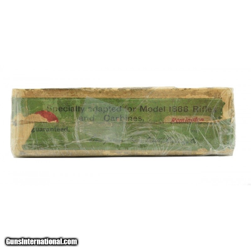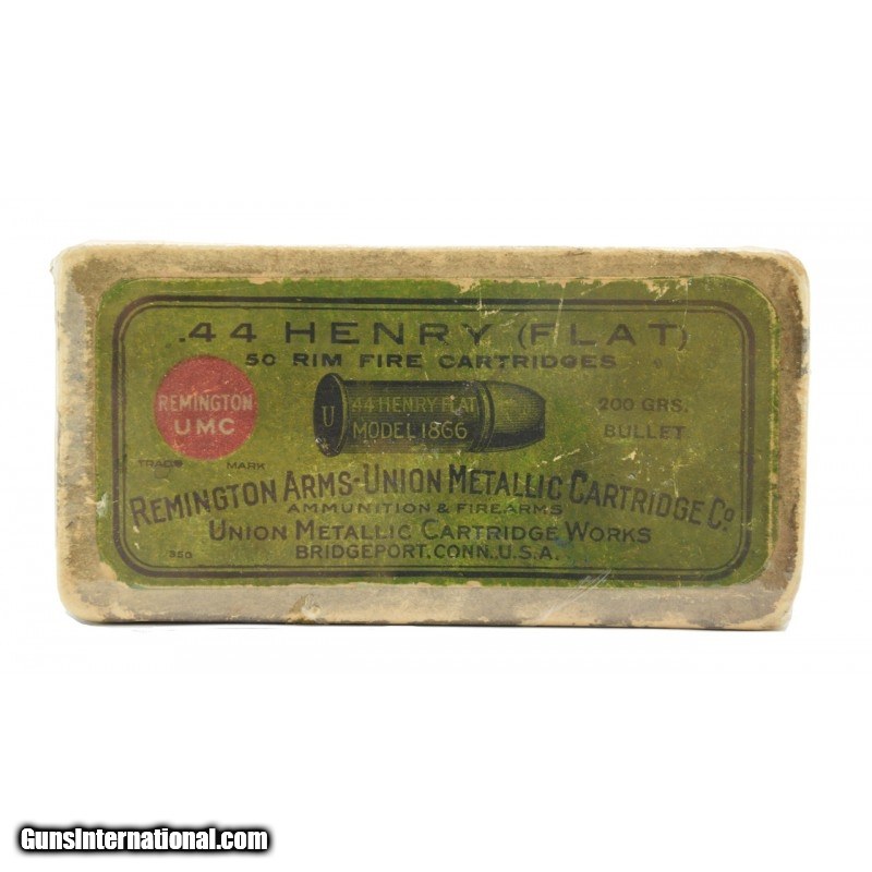 Description: "Remington UMC .44 Henry Rimfire Ammunition Packet. Complete box with all proper headstamp. The label is for the most part intact albeit some staining. Hard to find .44 Henry Rimfire ammunition. SOLD |