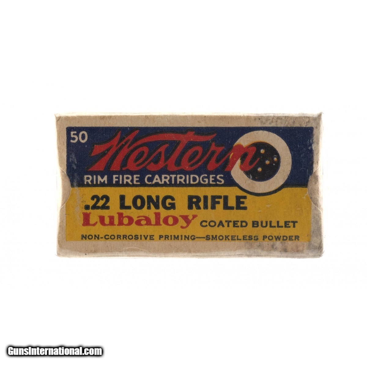 Description: " Western Rim Fire Cartridges .22 long Rifle Lubaloy coated bullets 50rd count. Box is in excellent condition. SOLD |