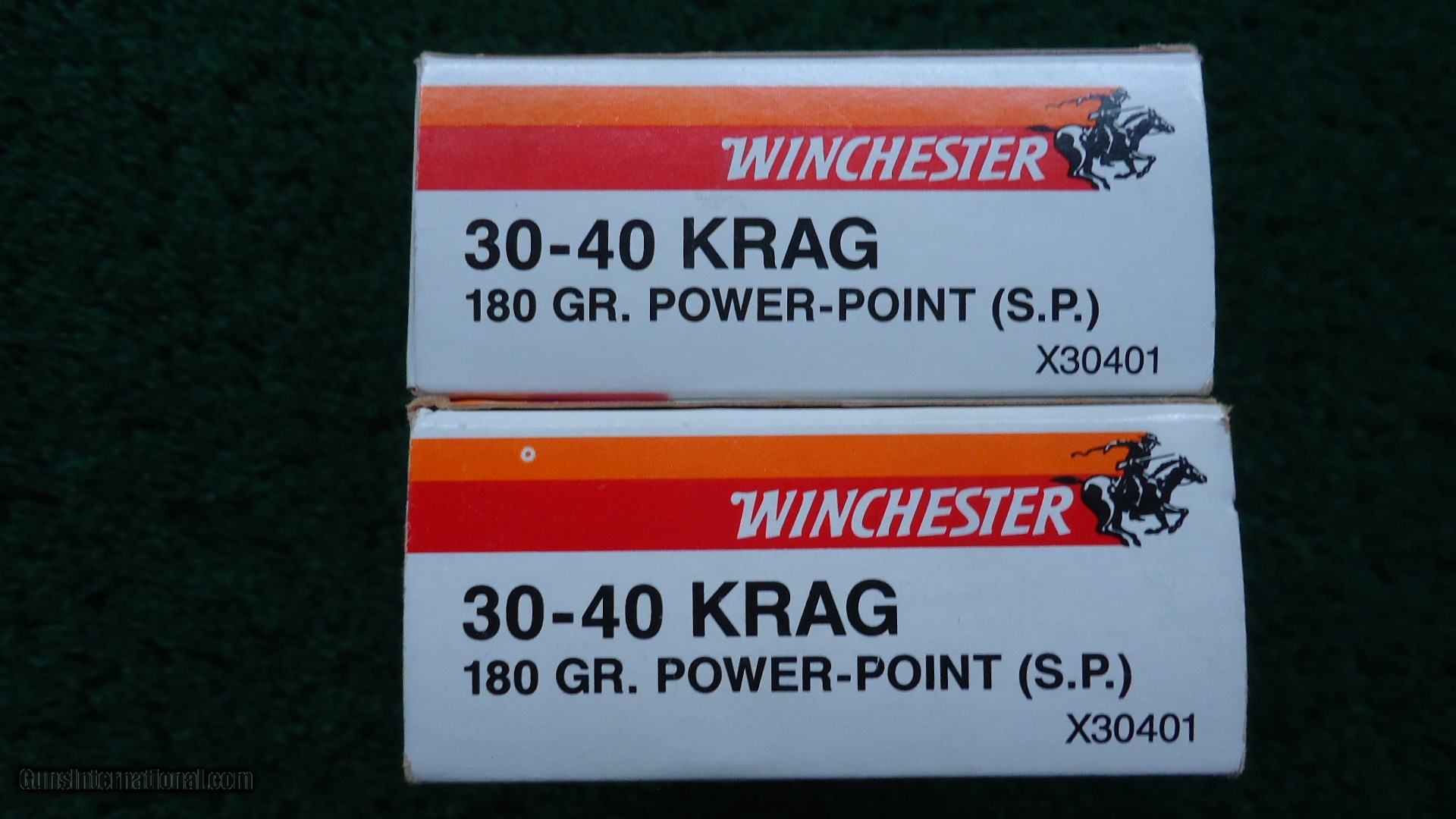 Description: 2 full boxes of 20 cartridges each of 30-40 Winchester 180 Grain Power Point (Soft Point) Bullets. 40 rounds total. These are getting harder to come by. Free Shipping. Leroy Merz Antique Firearms specializes in antique and vintage Winchesters and other fine American firearms. Since 1965 Mr. Merz has taken part in the world of firearms and has been a contributor to many well known reference books. We have hundreds of additional guns in every price range at our home online. Search for Merz Antiques in google. SOLD Rifle Caliber: .30-40 Krag |