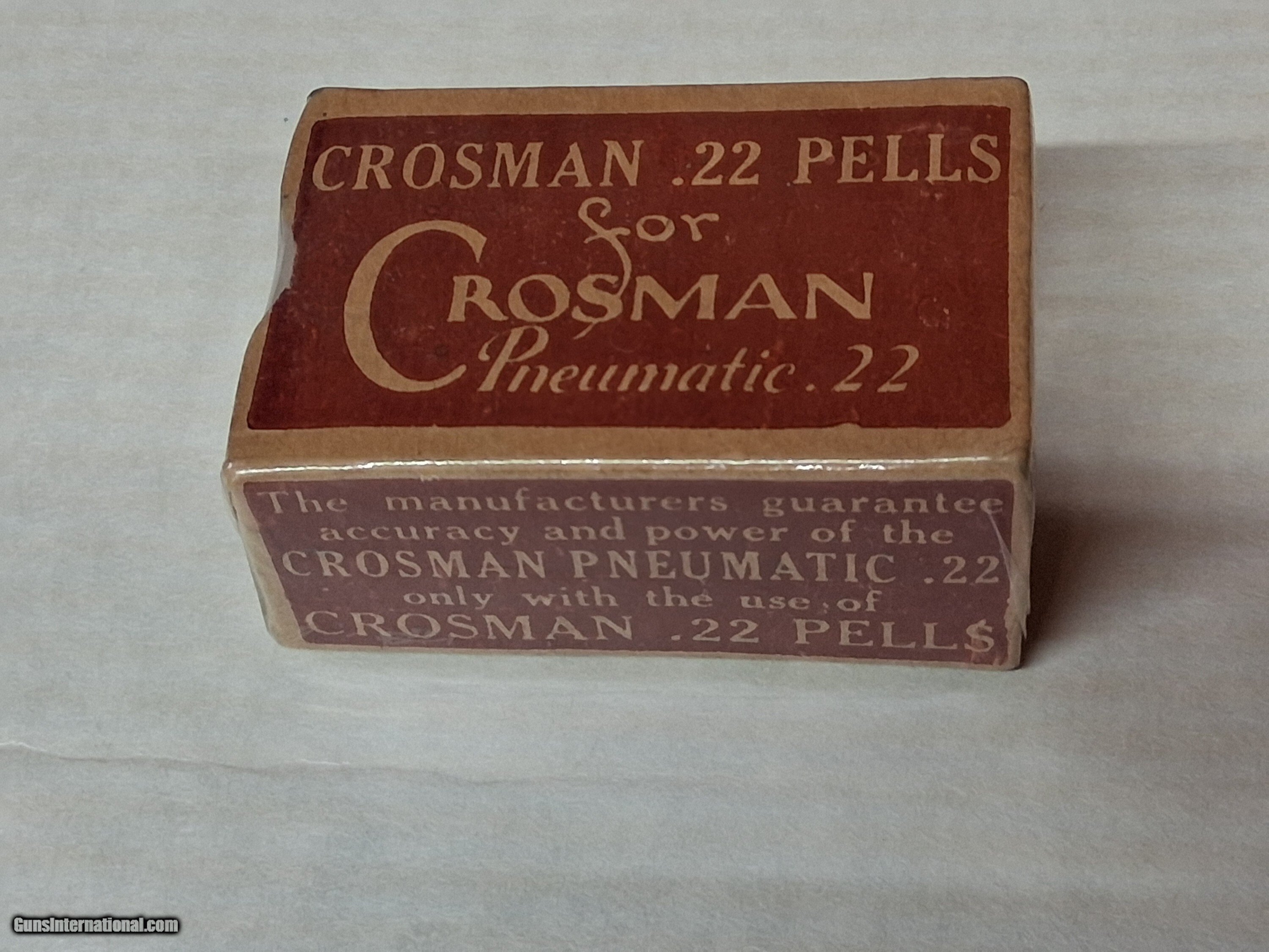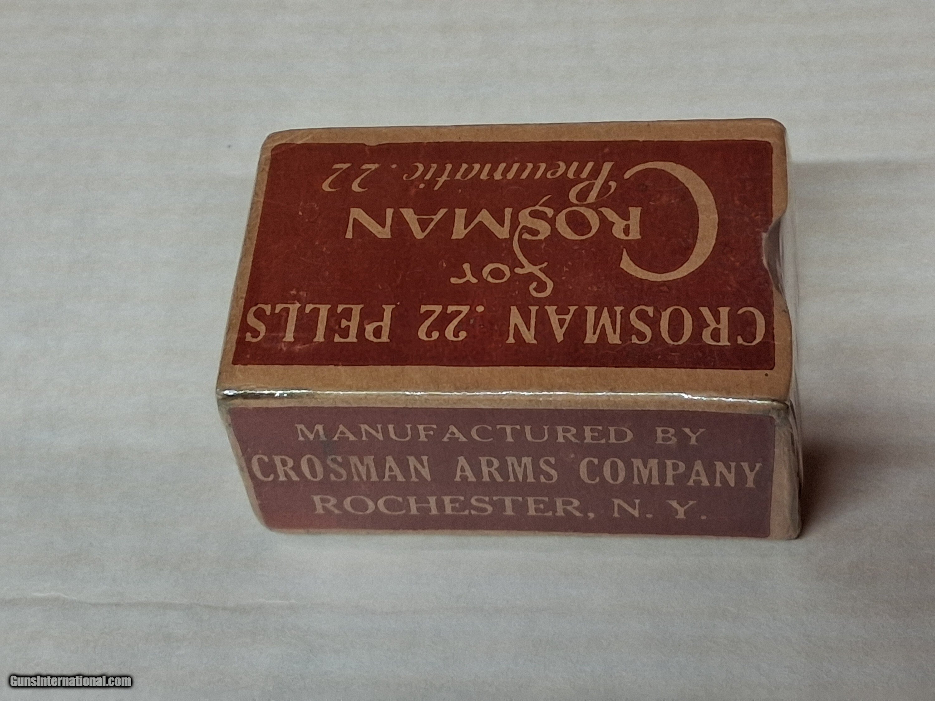 Description: Crosman .22 cal. Pellets dated back to the 1920's. First version of Crosman's Pellets. This was prior to the long-standing SUPER PELLS name. The Box came wrapped just as pictured from the Tomstone Western Heritage Museum's inventory in Tombstone, AZ Description - Box size is 1" x 2" x 3-1/4" Weight - over 9 ozs. The box has not been opened and contents inspected. $80.00 plus actual shipping and insurance cost. Payment in the form of a Bank Cashier's Check or a USPS Postal Money Order. Price: $80.00 Contact Seller |
