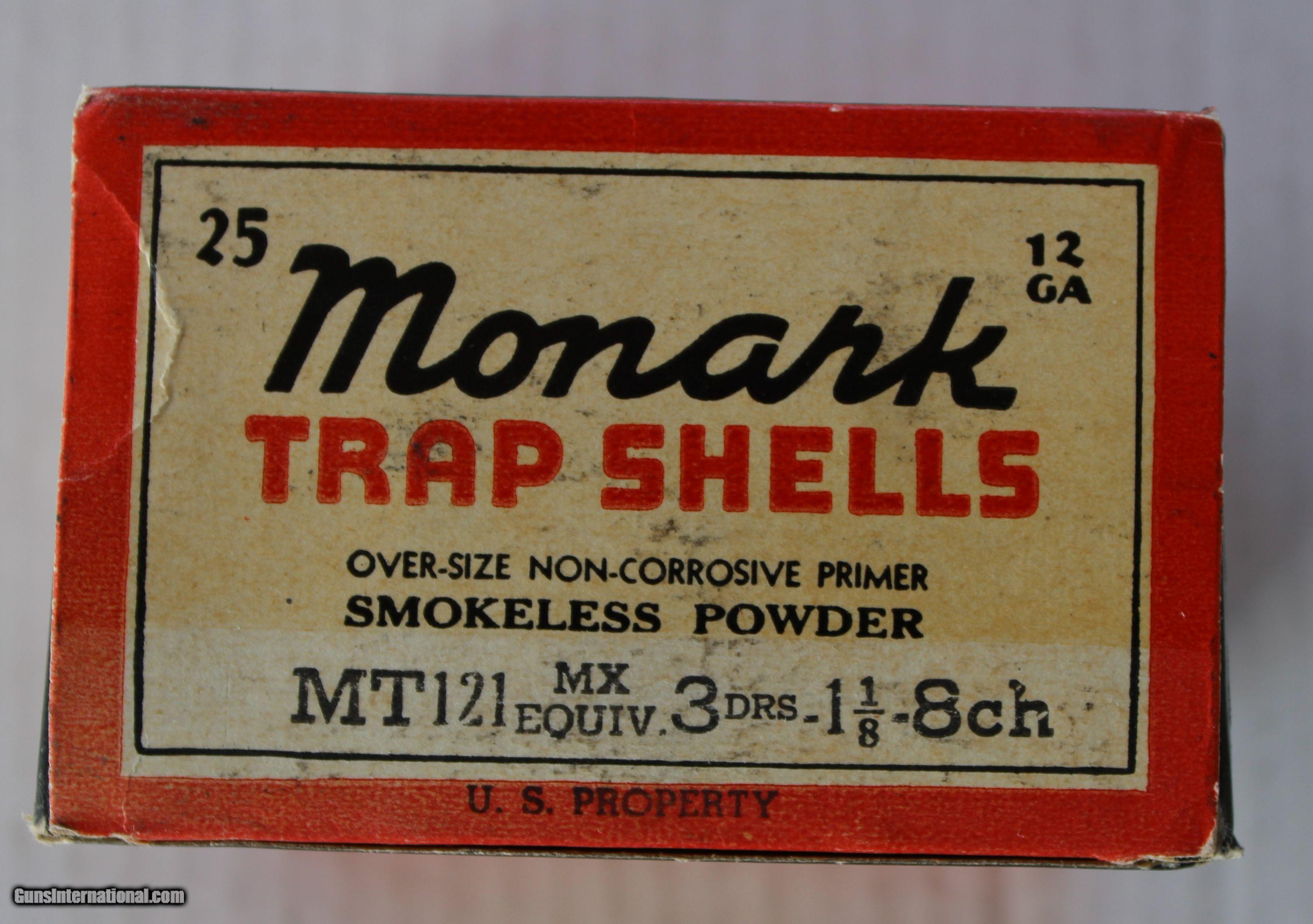Description: SALE PENDING WWII issue of 1944 Federal Monark Trap Shells with the U.S. Property stamp on the box. This is a 12 gauge box full and correct of 8 Chill shot size. These shells were often used to train gunners on bombers during WWII. It was cheaper to learn to shoot from a moving vehicle at a moving target (trap targets) with 12 ga. shells than .50 caliber cartridges. All sides have been pictured for your review as I believe the box is in Excellent condition, however you be the judge. Please email me should you have any questions about his item. Add $17.00 for UPS Ground shipment to USA CONUS 48. Ammunition is for collecting. NOTE: Picture 6 the side was somewhat washed out by the camera flash, nothing wrong with the side. SOLD |
