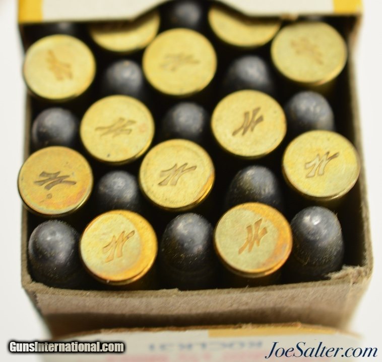 Description: This is a lot of three boxes, 150 original rounds, of .22 LR Super-Match ammo manufactured by Western as part of the Super Match Mark III 1962 issue with child warning and the Super Match Mark IV 1960 and 1962 issues the later with child warning. Included is a box of Mark III and two boxes of Mark IV cartridges. The boxes are in excellent condition with crisp graphics and the cartridges are in excellent condition. Identified as WCC-51.3 LR-3(e); WCC-51.4 LR-1(b); and WCC-51.4 LR-2(a) in Roger Huegel's online .22 Rim Fire Box ID reference. Price: $65.00 Contact Seller |