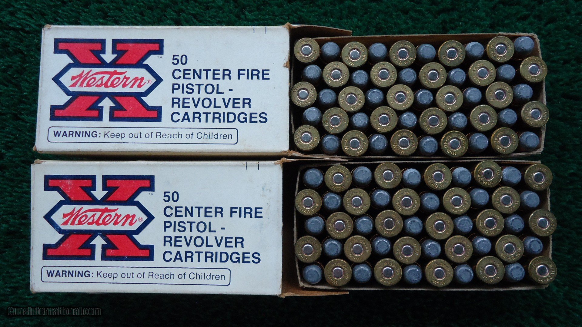 Description: 2-50 round boxes of Western brand 44-40 Winchester caliber 200 grain soft point bullet cartridges. Hard to find 44-40 WCF for your Winchesters and Colts. Leroy Merz Antique Firearms specializes in antique and vintage Winchesters and other fine American firearms. Since 1965 Mr. Merz has taken part in the world of firearms and has been a contributor to many well known reference books. We have hundreds of additional guns in every price range at our home online. Search for Merz Antiques in google. SOLD Rifle Caliber: .44-40 Winchester |