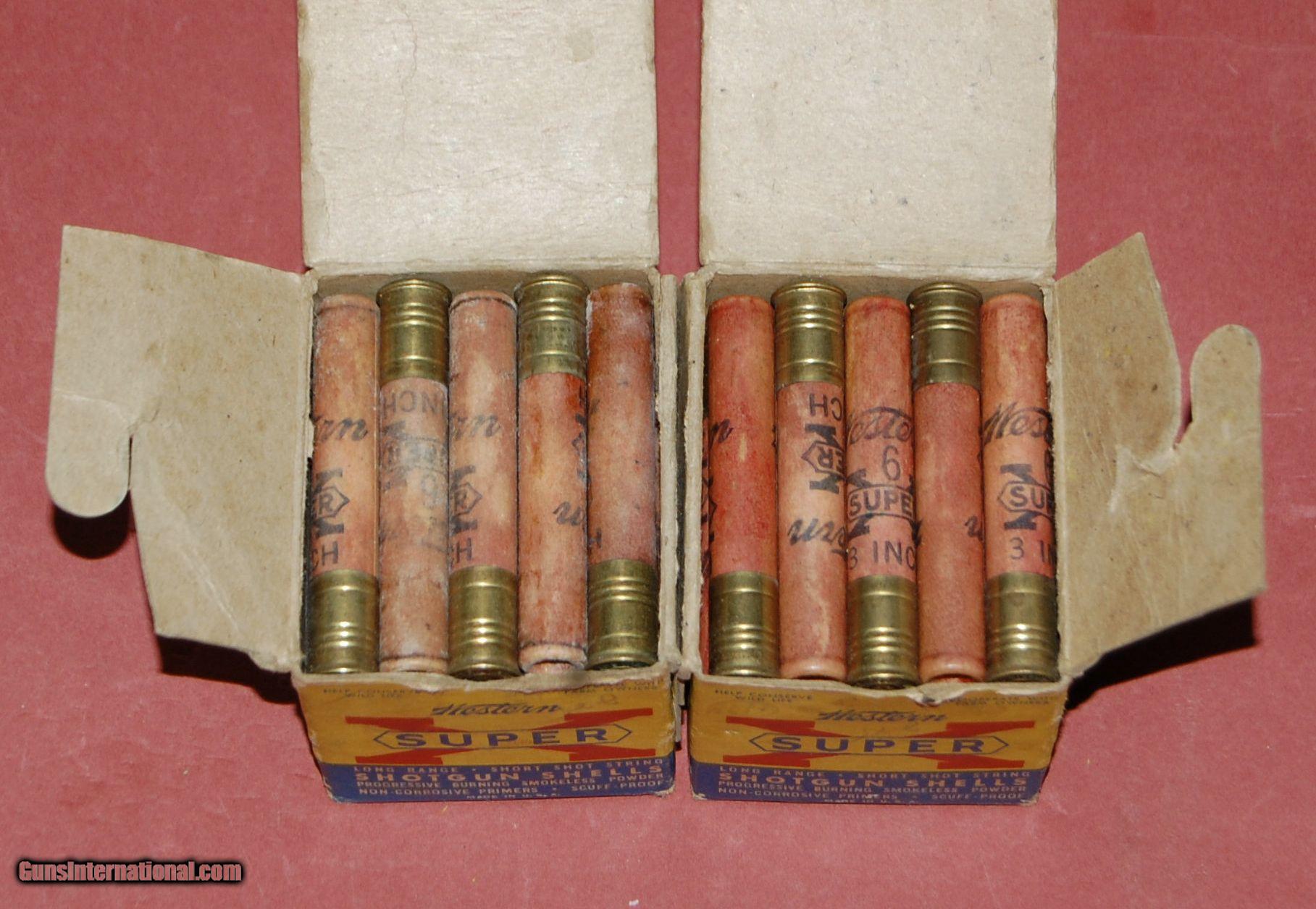 Description: Two full boxes of Winchester Western 3" 410 shotshells.All of the the shells are #6 shot and are in excellent condition.The boxes have good colors and a little wear on the corners.Very hard to find. SOLD |