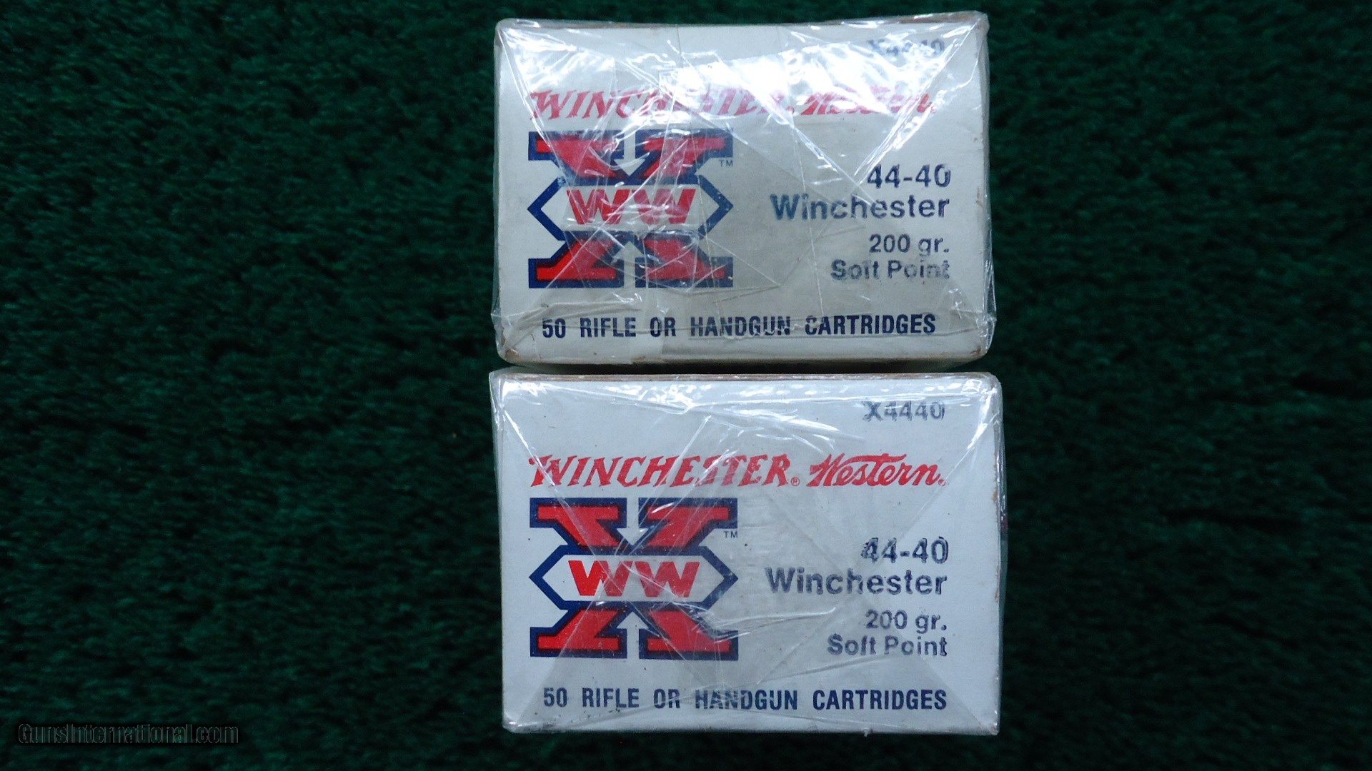 Description: 2-50 round boxes of Western brand 44-40 Winchester caliber 200 grain soft point bullet cartridges. Hard to find 44-40 WCF for your Winchesters and Colts. Leroy Merz Antique Firearms specializes in antique and vintage Winchesters and other fine American firearms. Since 1965 Mr. Merz has taken part in the world of firearms and has been a contributor to many well known reference books. We have hundreds of additional guns in every price range at our home online. Search for Merz Antiques in google. SOLD Rifle Caliber: .44-40 Winchester |