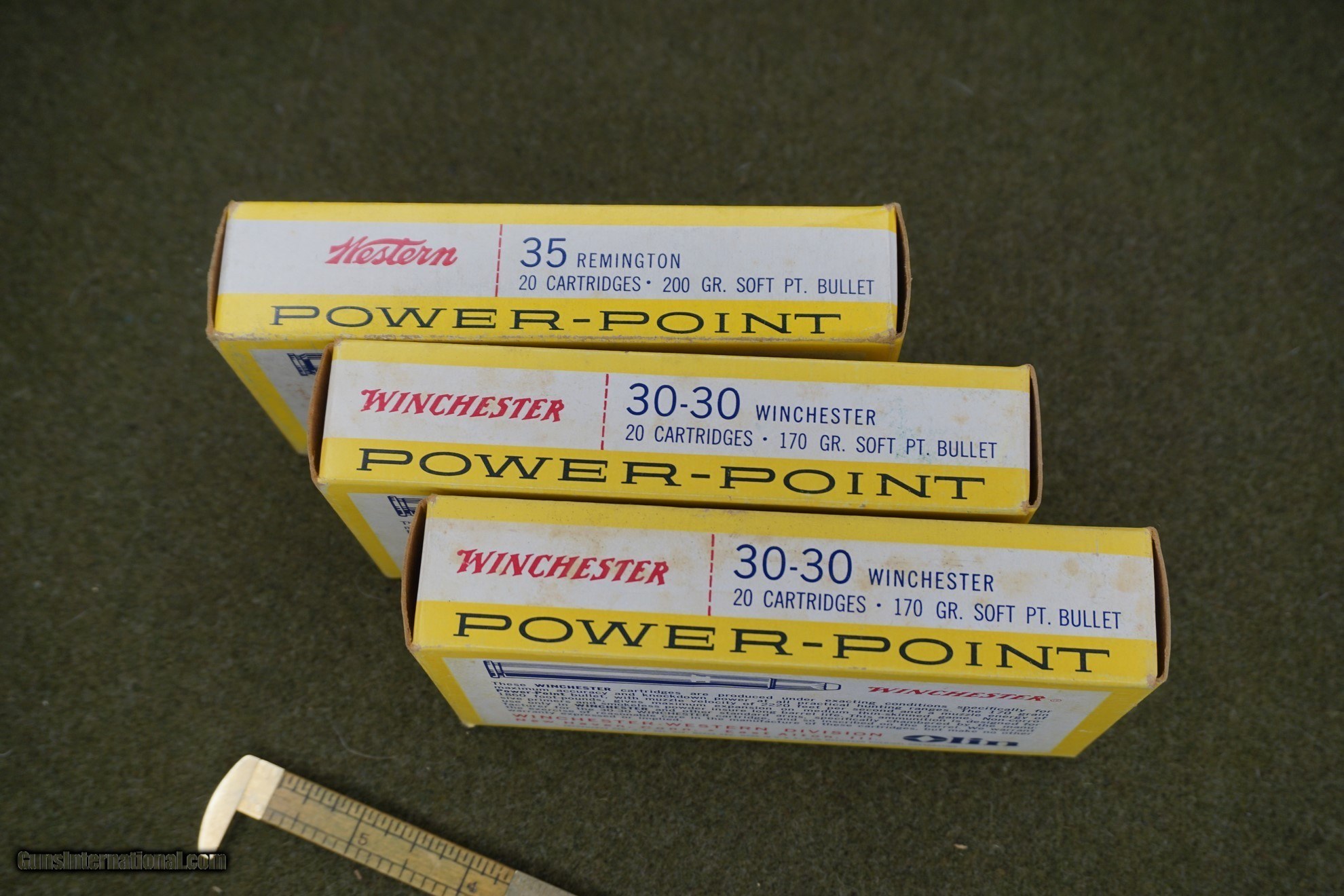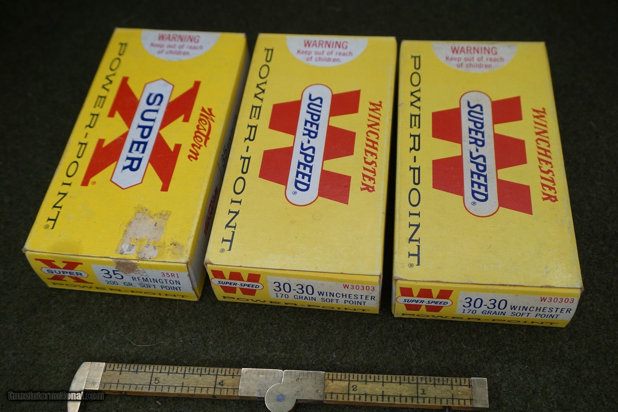 Description: 2 boxes of 30-30 win and 1 box 35 rem factory full boxes, Nice SOLD Rifle Caliber: .30-30 Winchester |