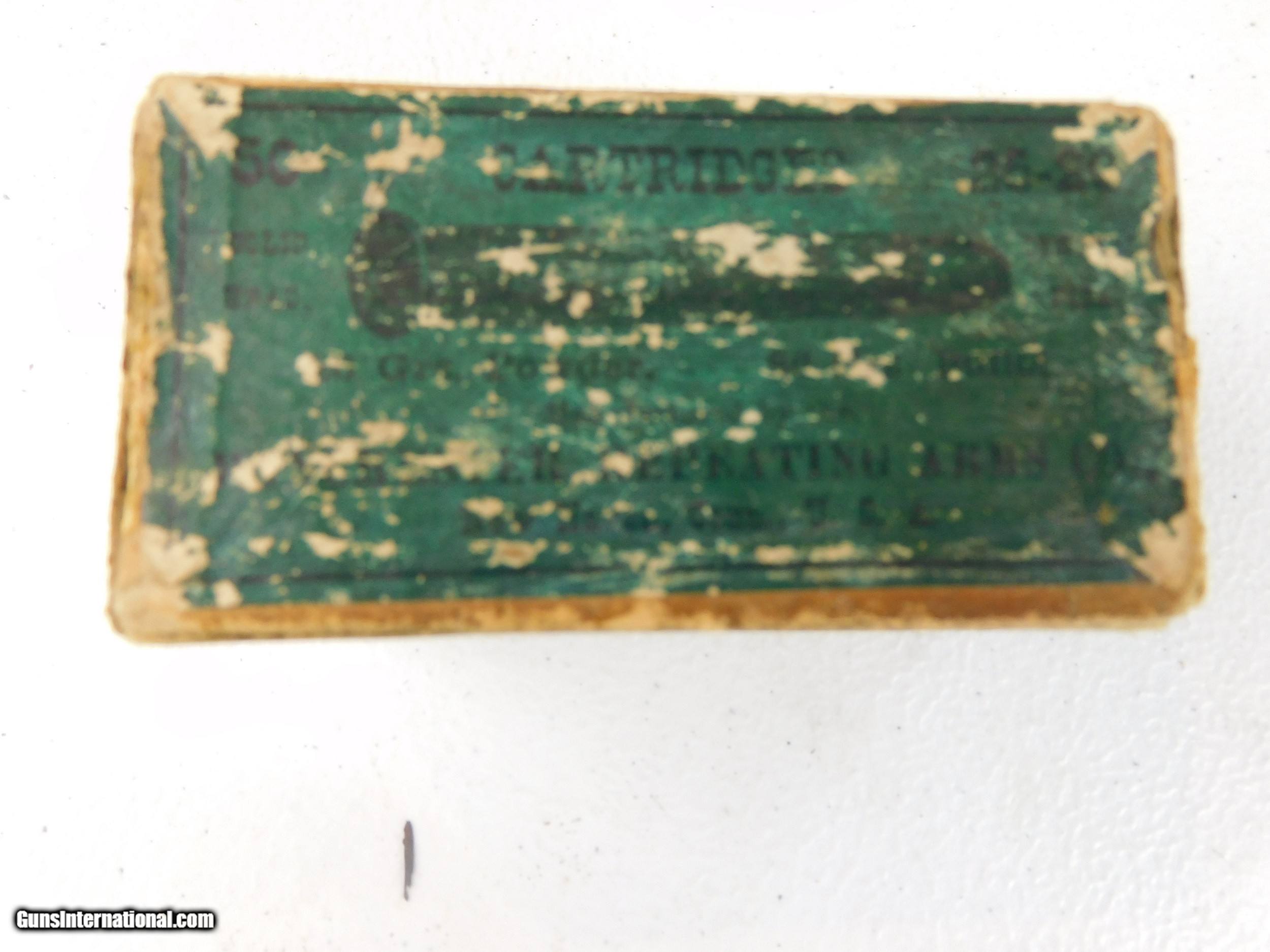 Description: #3862MA 25-20 Stevens, Win. green & yellow 2 piece 50 rd. box, label is there but faded and hard to read, lead bullets, ammo is in exc. condition. $125 SOLD |
