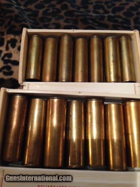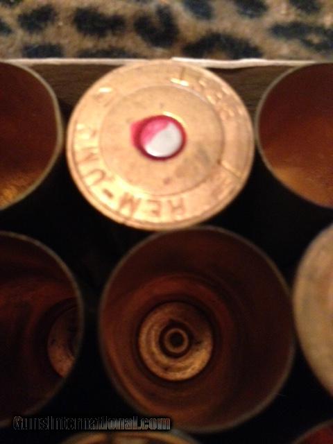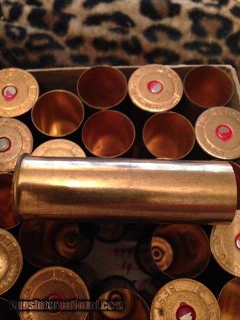 Description: CHECK OUT THE PHOTO'S! 38 full length brass military shotshells. 14 of the shells have been fired as the primers indicate. The 24 in the square box are new/mint w/live primers. The head stamp reads 12 ga. Rem UMC. SOLD |