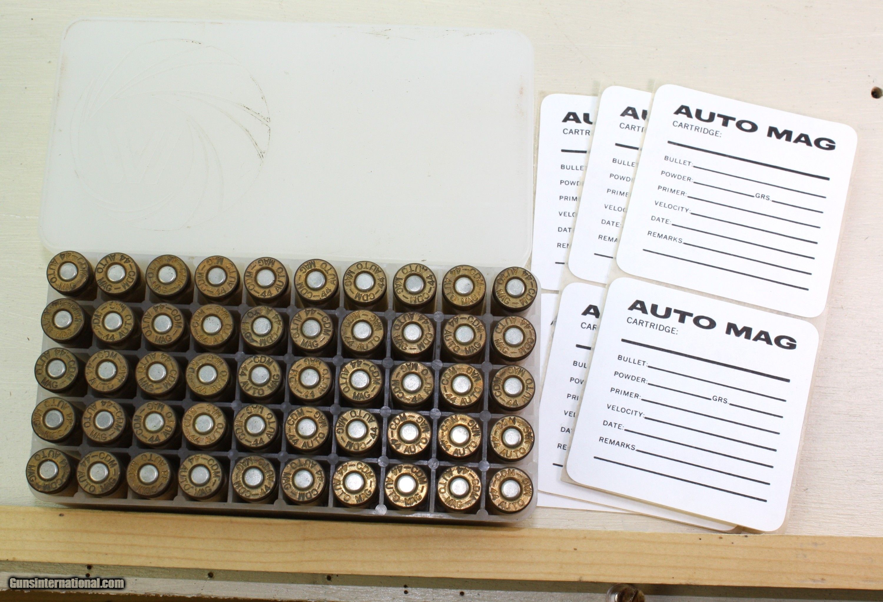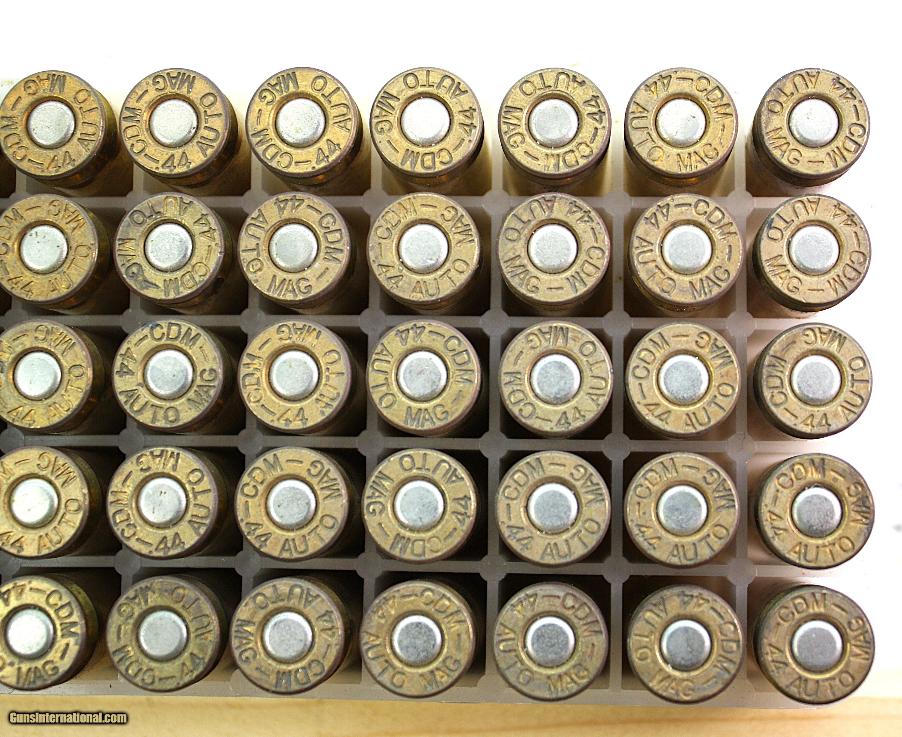 Description: This is an original full plastic box of 44 Auto Mag ammunition. The box contains 50 rounds of JHP ammo. Head stamped 44 Auto MG CDM. There are also 6 reload labels. Packing, shipping and insrance is $25 Handgun Caliber: .44 Auto Mag Price: $100.00 Shipping: $25.00 Buy Now Contact Seller |
