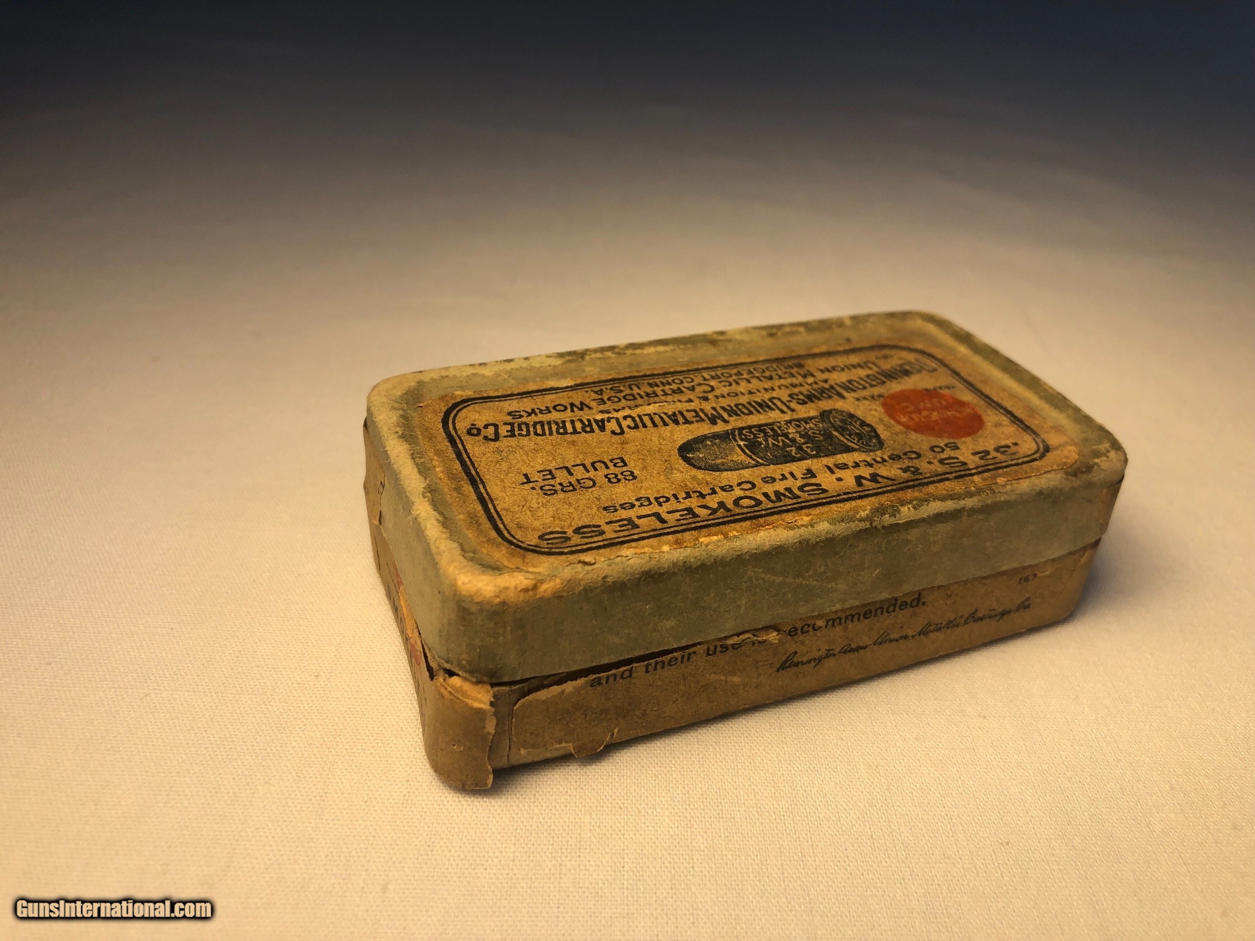Description: Remington 32 caliber Smith & Wesson smokeless center fire cartridges. Box is in good- fair condition and only contains (6) cartridges. Ground shipping and handling extra. Ships to the lower 48 states only. (Except no ship to CA & NJ) This ammunition is sold as a collectors item only and we make no quarantees to its quality or functionality. Please know and abide by your local laws in regards to purchasing ammunition. Signature required at point of receipt. We accept Master Card and Visa, personal check, or money order. SOLD |
