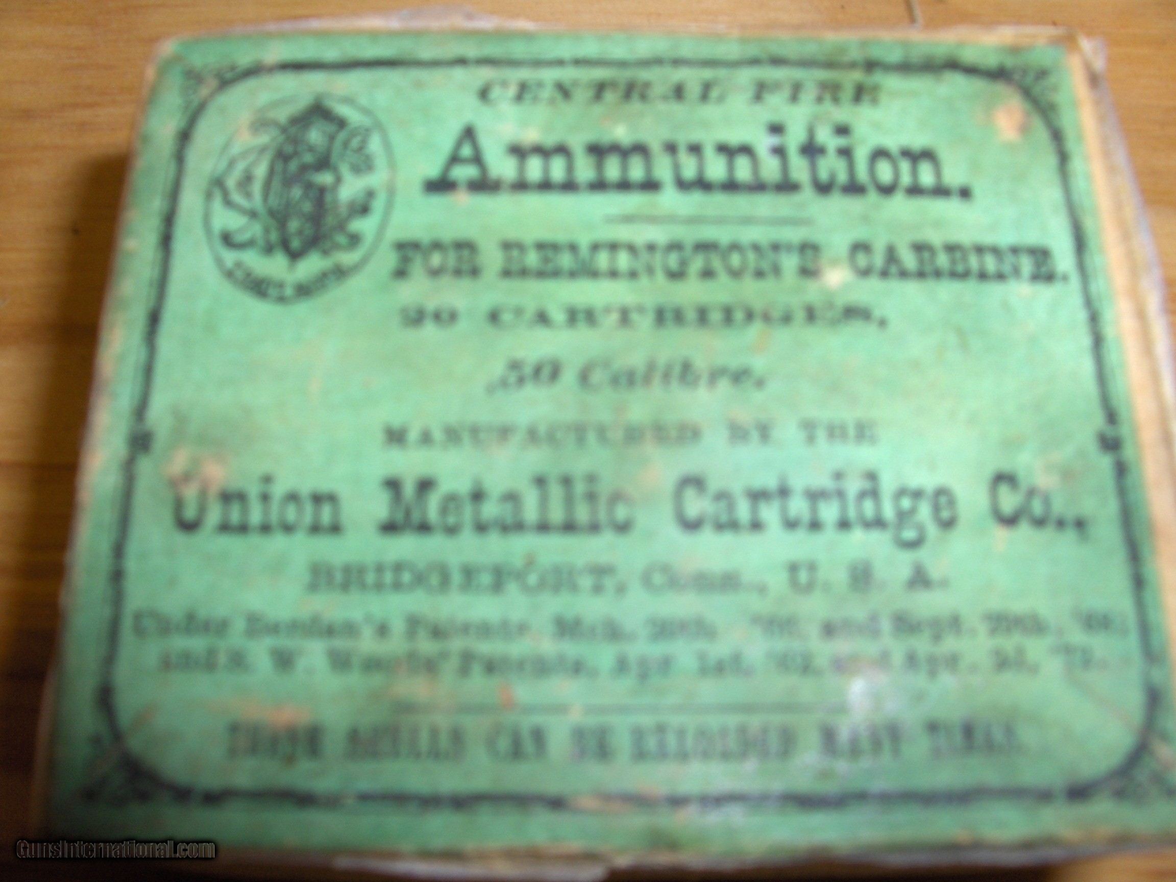 Description: Full box of 20 + 10 loose 50 Caliber Rem. Carbine ammo. UMC mfg. Label Clear and legibile. SOLD |