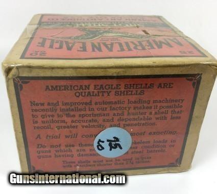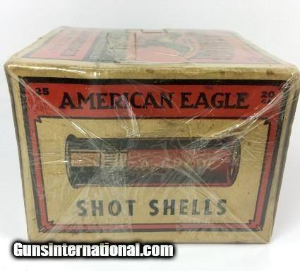 Description: FULL 25 round box American Eagle 20 ga Shotshells 2-3/4" Vintage A Grade 2-3/4" drs, 1ox 6 shot Box is in good condition, with nice vibrant contrasting colors. Some wear to the high edges. I have lots of ammo boxes and ammo to list, so please check out my other listings. Shipping will be $12 for the first box and $5 for each additional box. All boxes are shrink wrapped. SHIPPING CHARGES INCLUDE A TRACKING NUMBER & INSURANCE FOR THE FULL SOLD VALUE AND WILL BE WELL PACKAGED.