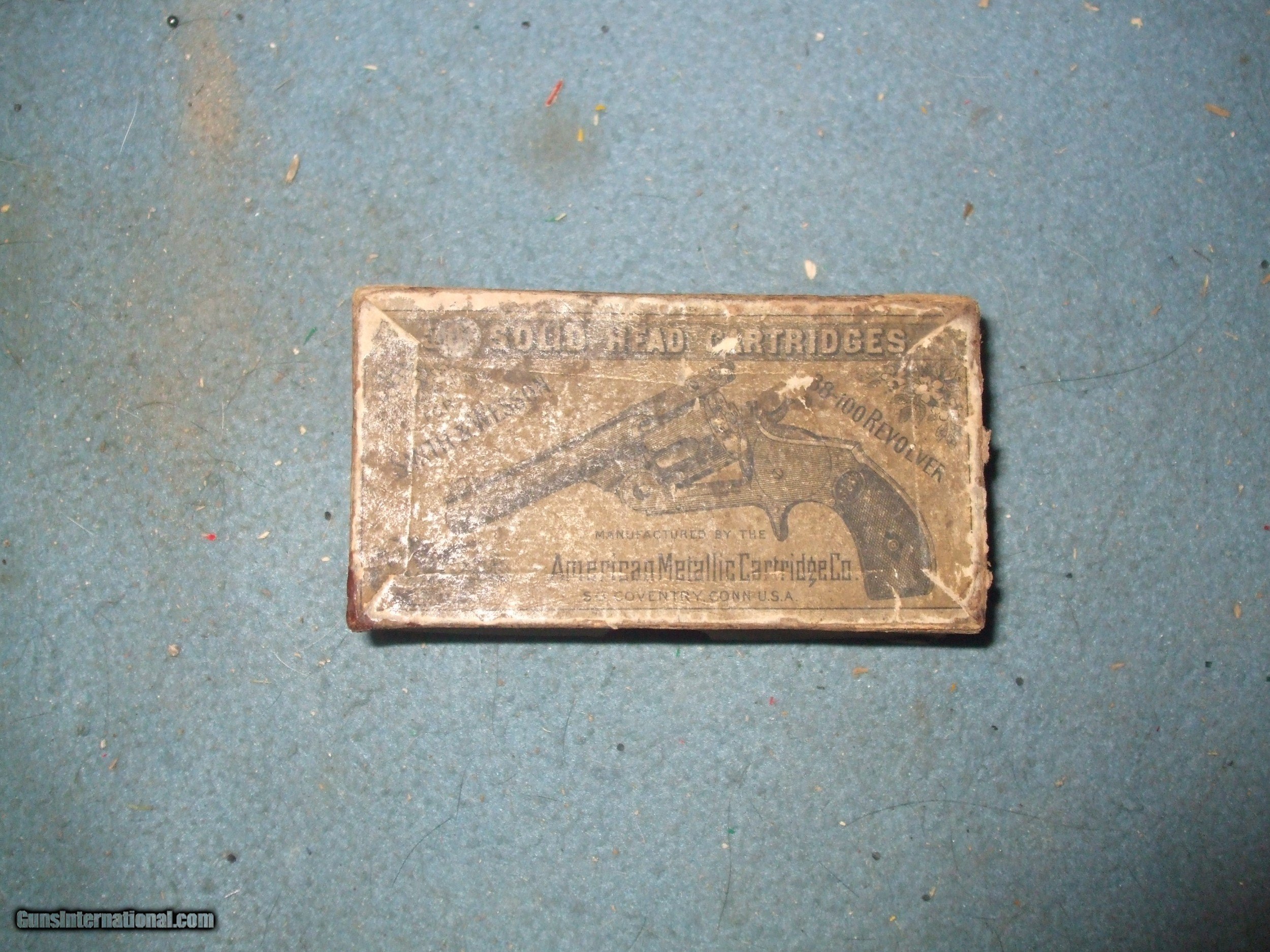 Description: American Metallic Cartridge Co 38S&W box only no ammo.The address on the box says S O Coventry, Connecticut. Box has patent date of September 9, 1879. Shipping $10.00 conus. SOLD |