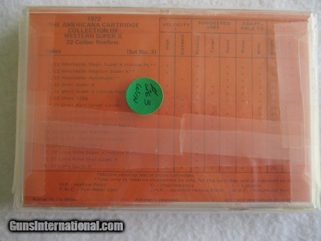 Americana Cartridge Collection of 22 Rimfire from 1972. Set of 4