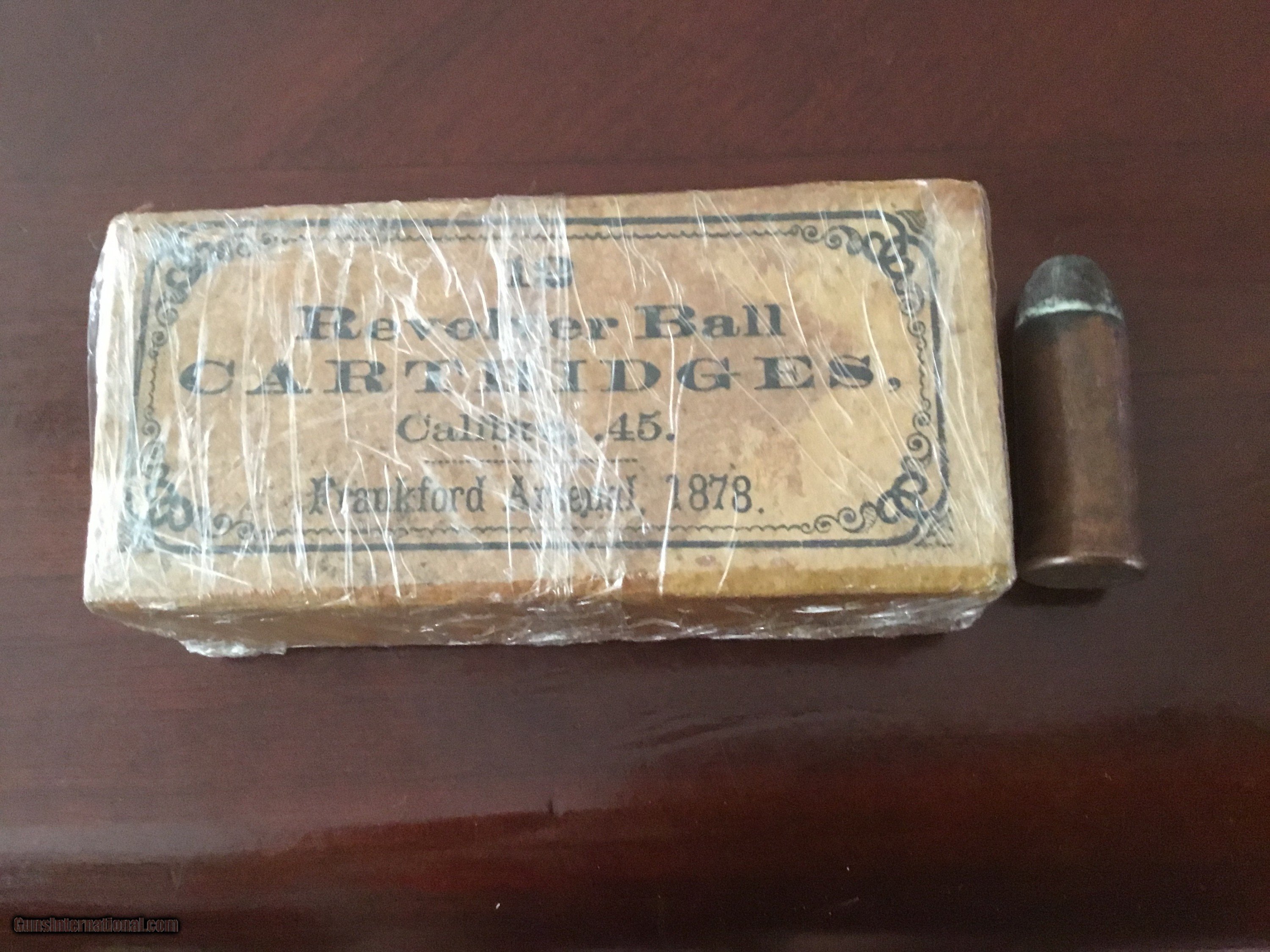 Description: Complete box of 1878 45 colt ammo. One end of box has been opened...pull string intact....shipping free... SOLD |