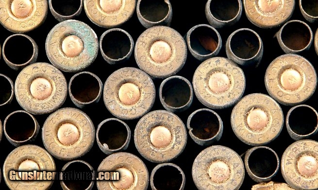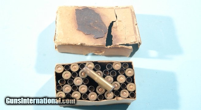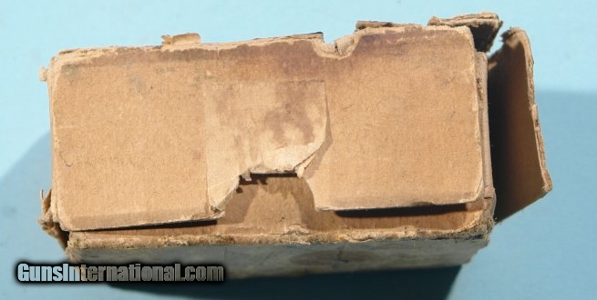 Description: BOX WINCHESTER REPEATING ARMS .32-20 WCF SHOT CARTRIDGES FOR THE 1873 or 1892 RIFLE. 47 unfired shotshells with extended case (1.69") as opposed to the standard (1.315"). The extra case was needed to house an effective shot load of what is probably No. 10 shot. Used more prominantly for trick shooting glass balls at Wild West Shows or small fur and feather. Primers are marked with a "W". As the original label is missing we believe they contain smokless powder from 1890's on and are NOT reloads. Box has remnants of some label and has some splits as well as ".32 Win Shot" handwritten on both ends. Make nice display set. SOLD |