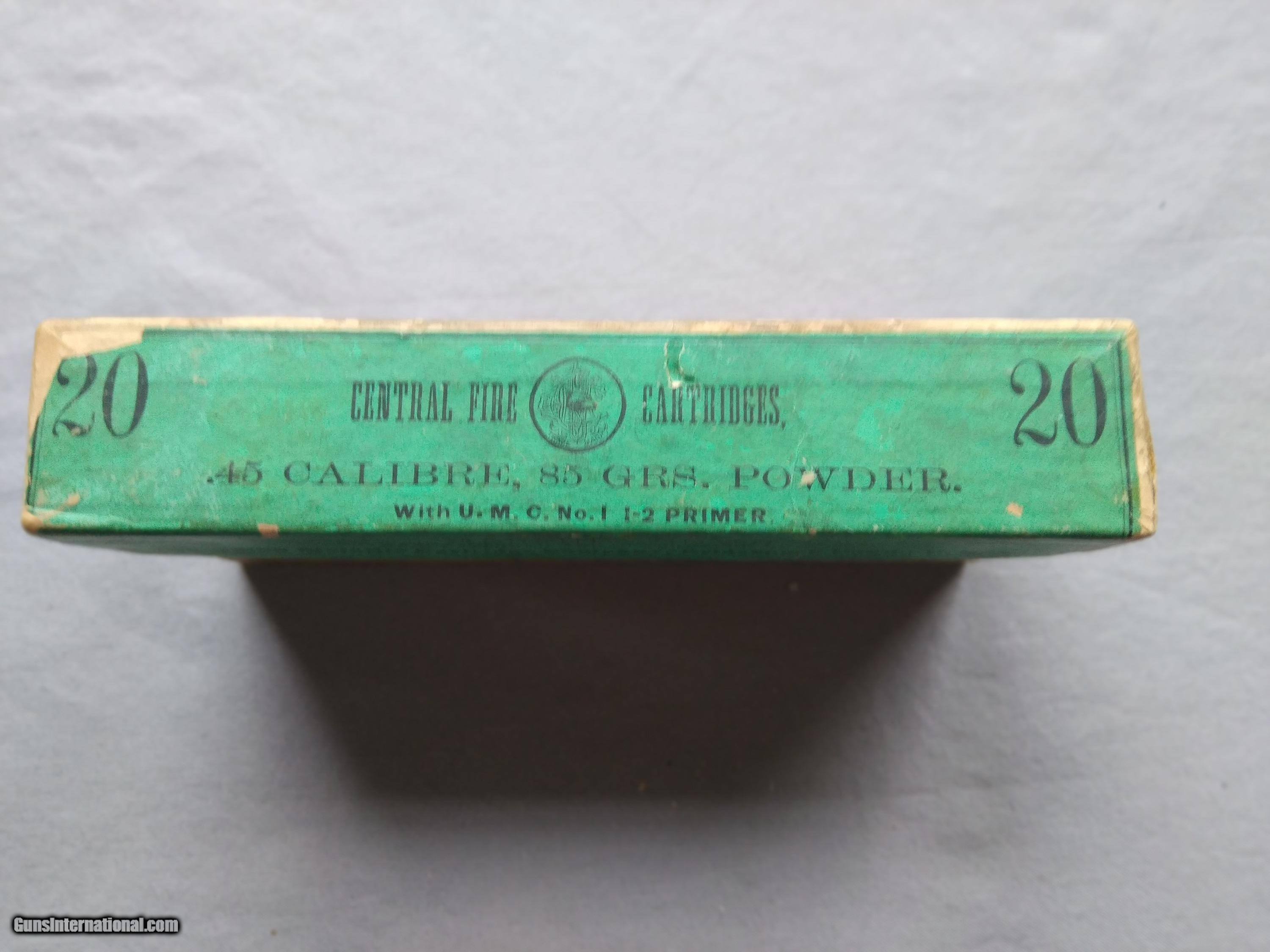 Description: Offering this 2 piece, early, rare box of Bullard 45-85 cartridges. Box is intact and in very excellent condition. The box features the very early "fine" print. I am slowly liquidating my rather large collection of Rifle 2 piece boxes (mostly Winchester and UMC) If there is anything in particular that you are looking for please call. These Bullard boxes are some of the only ones I have ever seen for sale and are very scarce, especially in this condition. It took many years to compile. $800.00 If you have any questions, please call Jim cell 540-539-6810, eves. home 518-477-4577 SOLD |