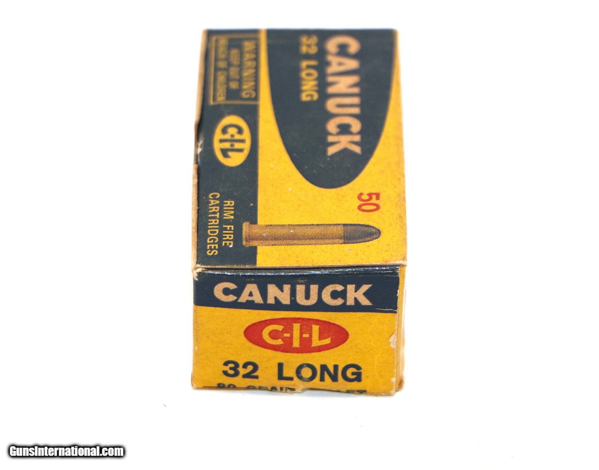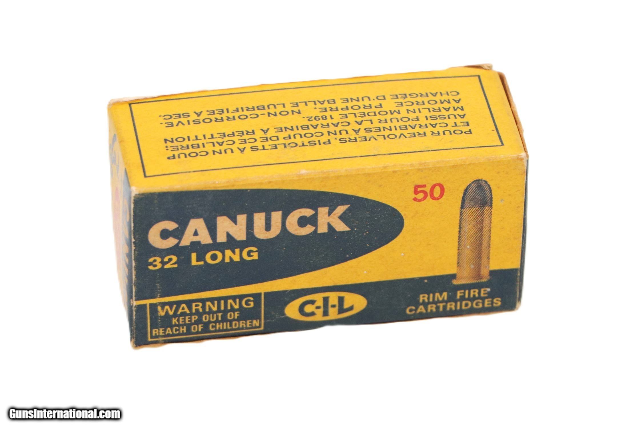 Description: Canuck, by CIL, .32 Long, Rimfire, 80 Grain, 50 Pristine Rounds. Add $14 S+H SOLD Rifle Caliber: .32 RF |