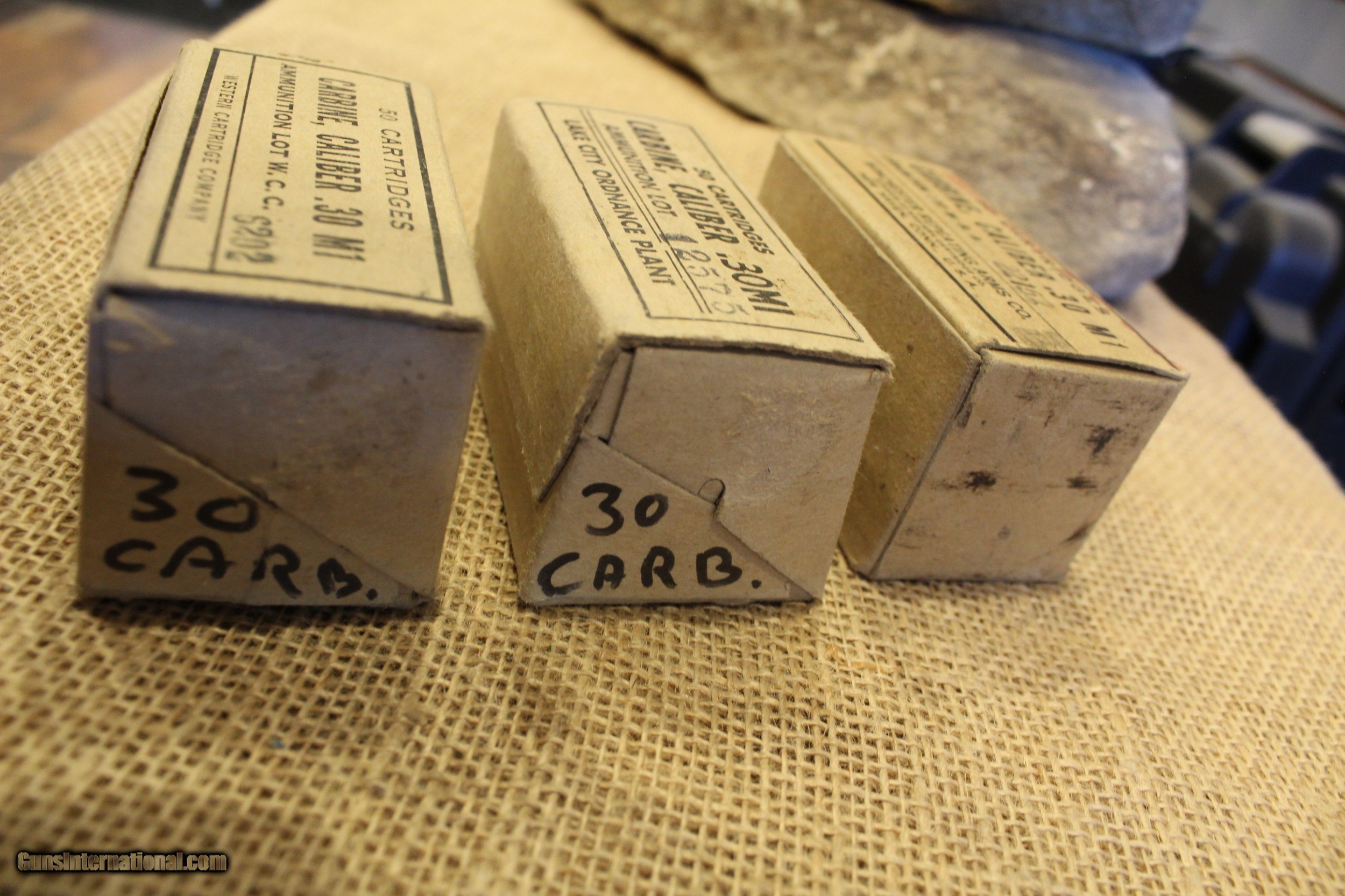 Description: Variety pack of Carbine, Caliber .30M1. Western Cartridge Company, Lake City Ordnance Plant, and Winchester Repeating Arms Co. Lake City is unopened. See photos for condition and call RW Outdoors with any questions at 406-842-5271. Shipping included, no California sales. SOLD Rifle Caliber: .30 Carbine |
