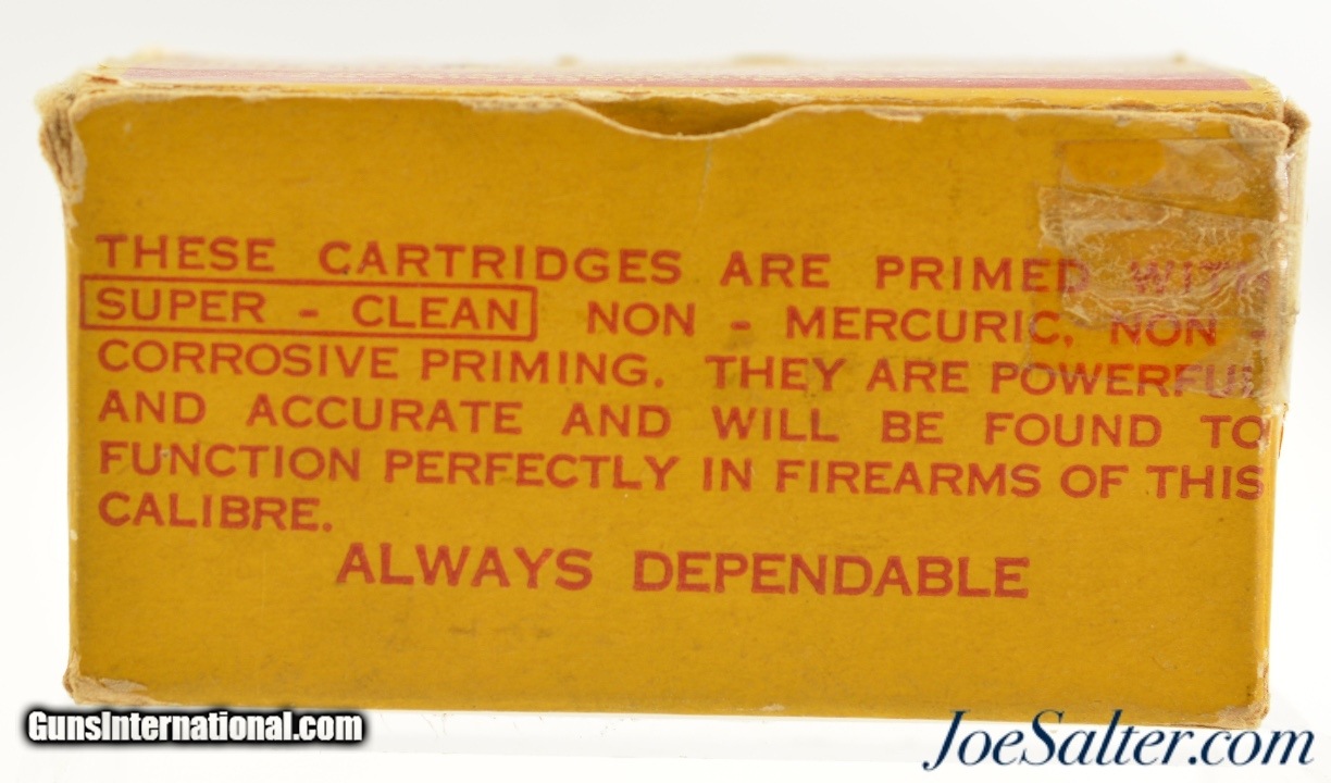 Description: This is a vintage box of 50 CIL Dominion .25-20 Pneumatic 50gr. High Velocity. The box is in good condition with one flap missing, some tape on one corner, some age soiling with excellent ammunition. SOLD |