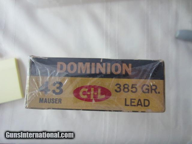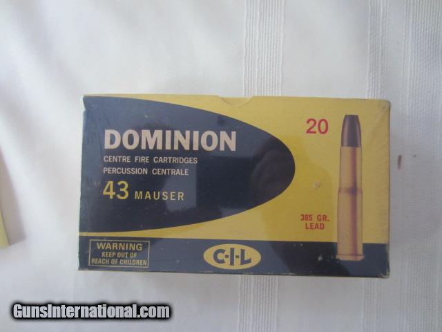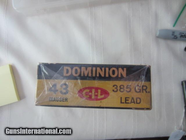 Description: CIL Dominion Brand Caliber 43 Mauser. Factory load. One box Only Price $50.00 Shipped via Fedx SOLD |