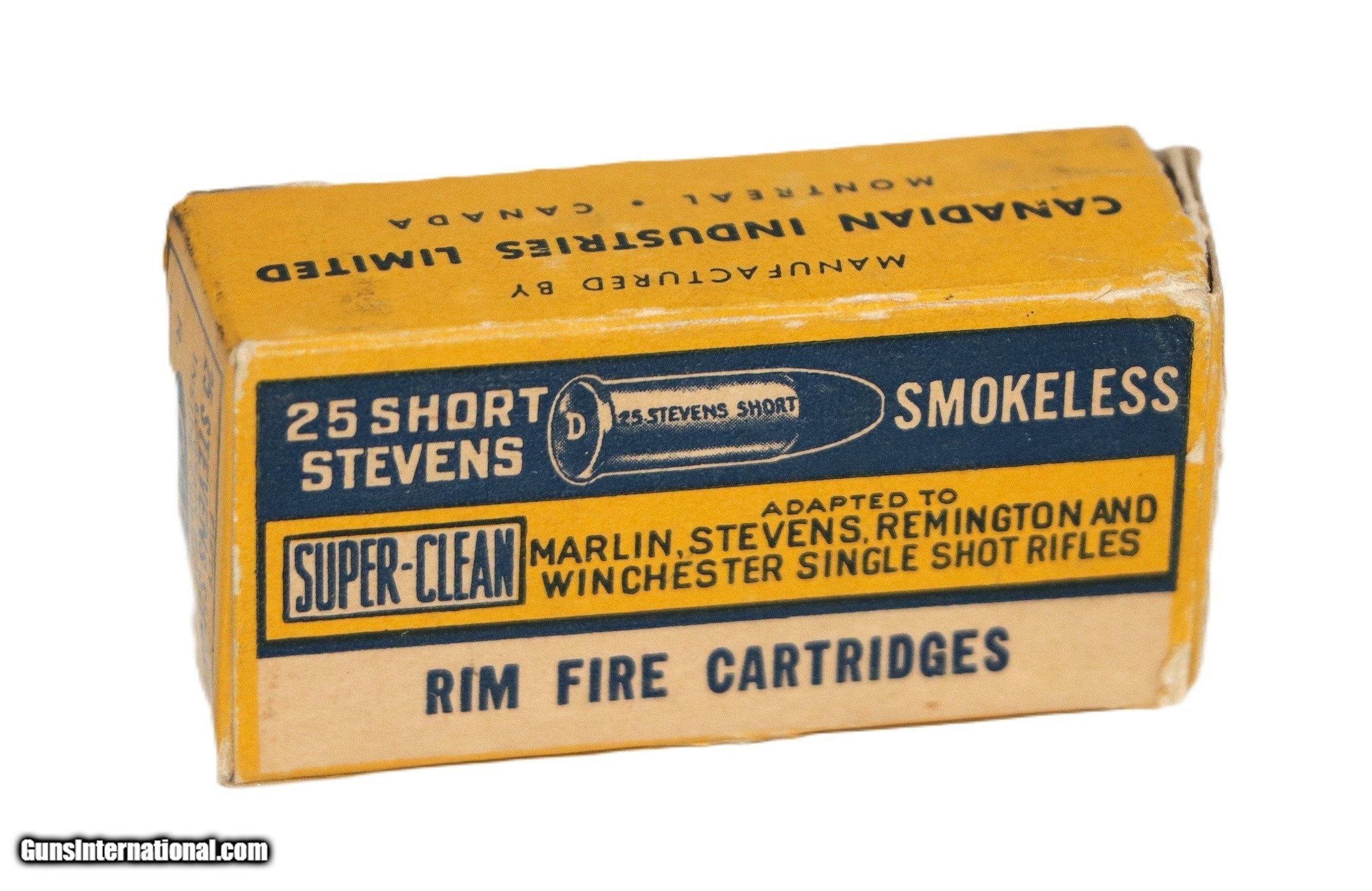 Description: CIL, Super Clean, .25 Stevens Short, RF, 65 Gr., 1pc, Full box with light croner and edge wear, ammo is Excellent. Rifle Caliber: .25 Stevens Price: $150.00 Shipping: $13.50 Contact Seller |