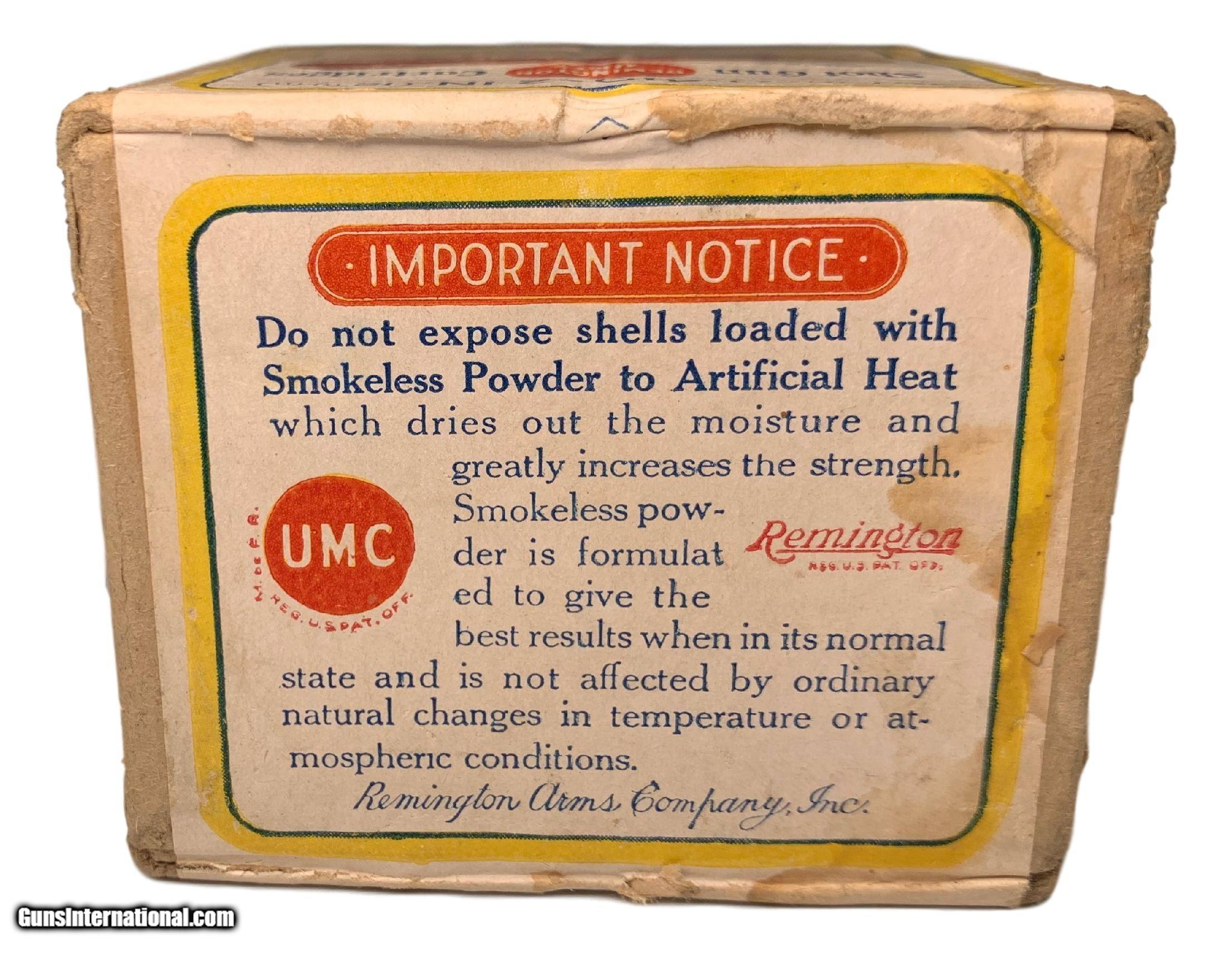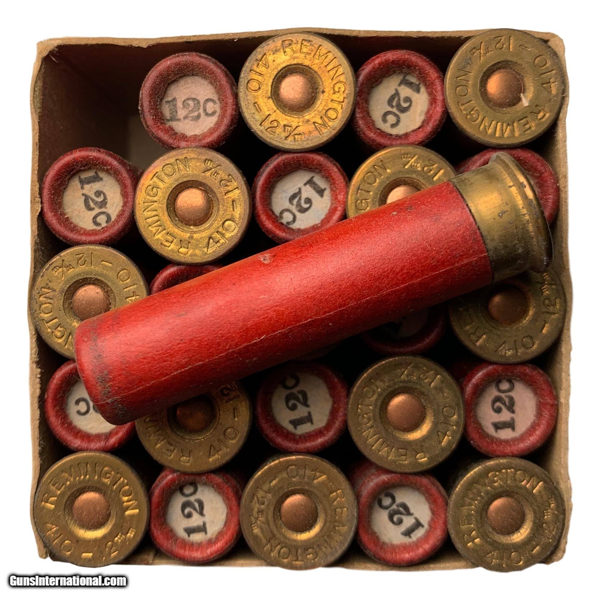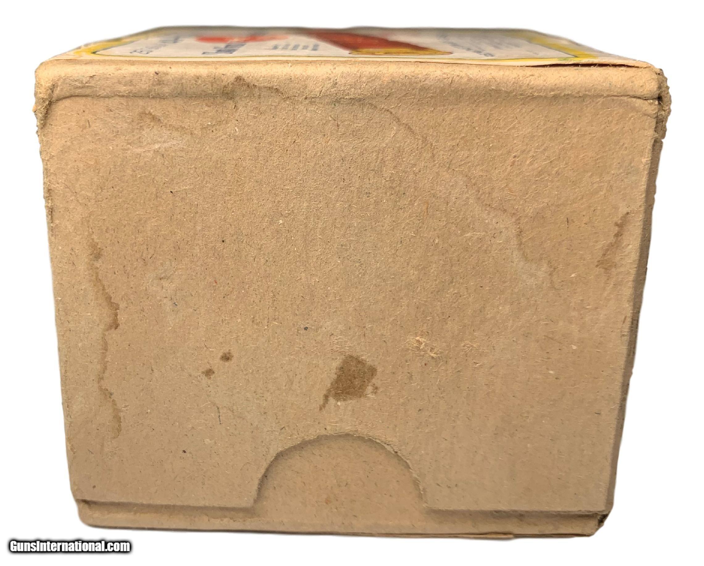 Description: Full box of 25 rounds. Overall a nice box with some light soiling from age. All matching "Remington .410 12 m/m" headstamps. Please refer to photos for condition details. Please contact us with any questions. This ammo is being sold as a collector's item only and we make no guarantees as to its quality or functionality. Free Shipping To The Lower 48 States Free Local Pick-Up Please know your local laws in regards to purchasing ammunition. There are areas with restricted delivery. We will verify prior to processing your order. California residents pay 7.75% sales tax. We are offering free shipping on this collector ammo. We have a huge quantity of collector ammunition for sale. See our other listings. SOLD |