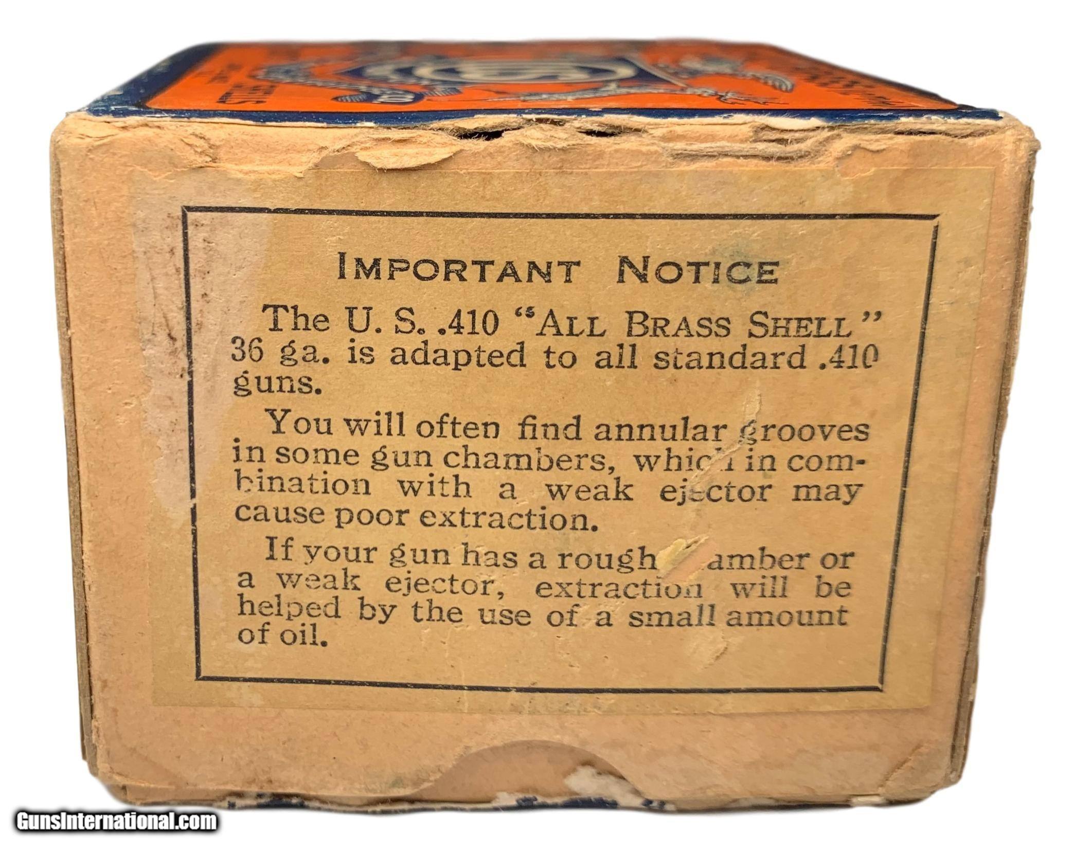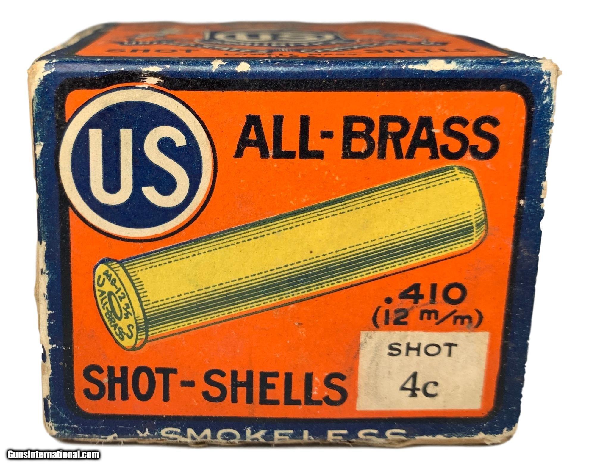 Collectible Ammo: Full Box of US .410 ALL BRASS 12 m/m Shot 4C Shot shells