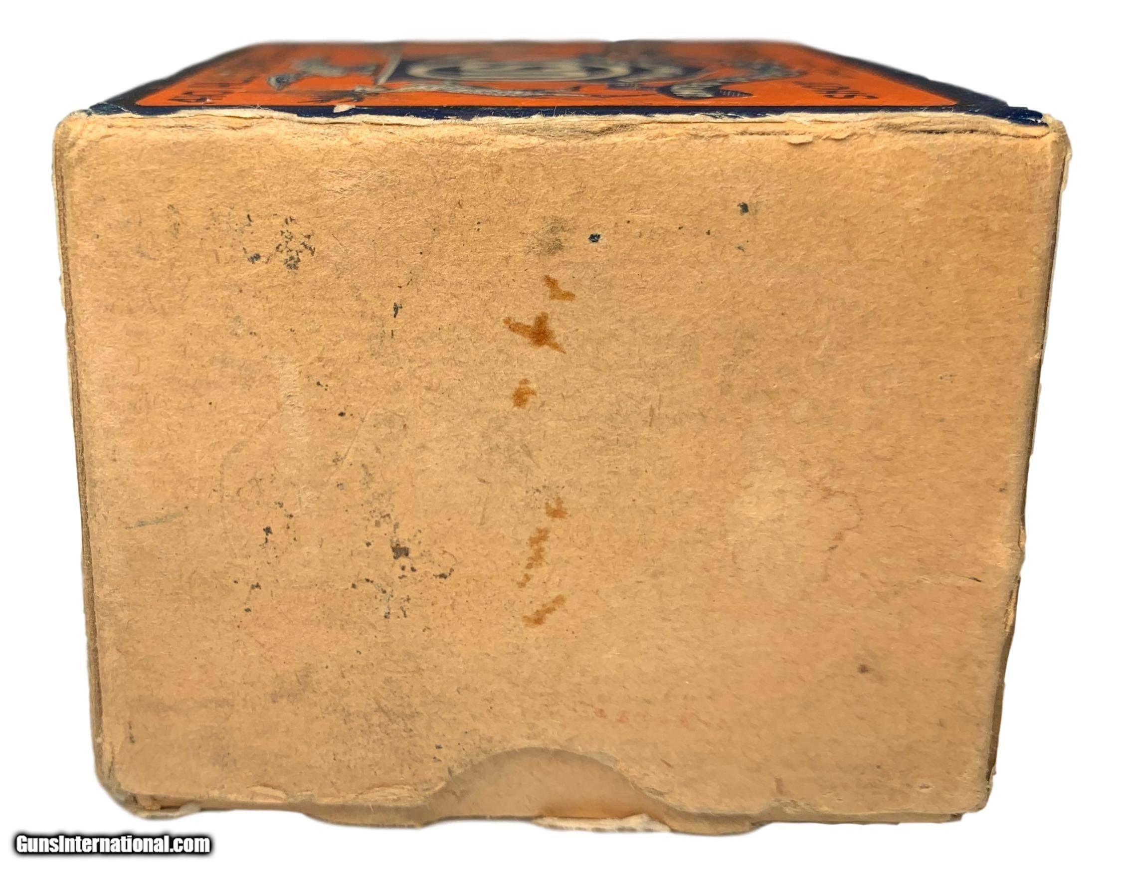 Description: Collectible Ammo: Full Box of US .410 ALL BRASS 12 m/m Shot 4C Shot shells Full box of 25 rounds. Both top and bottom edges have rips in the edges. All matching "US 410-12 m/m All Brass" headstamps. 4c shot. Please refer to photos for condition details. Please contact us with any questions. This ammo is being sold as a collector's item only and we make no guarantees as to its quality or functionality. Free Shipping To The Lower 48 States Free Local Pick-Up Please know your local laws in regards to purchasing ammunition. There are areas with restricted delivery. We will verify prior to processing your order. California residents pay 7.75% sales tax. We are offering free shipping on this collector ammo. We have a huge quantity of collector ammunition for sale. See our other listings. SOLD |