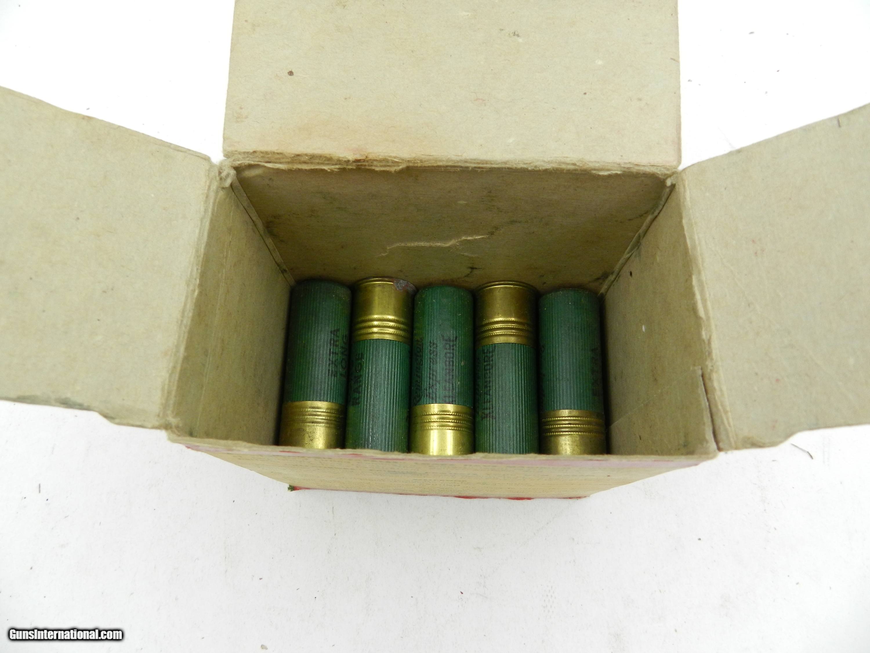 Description: Collectible Ammo: Lot of 14 Boxes of Remington 12 ga. Shotgun Shells: Approx. 330 Shells Boxes range from fair to good condition. With fraying to edges and corners. Some boxes with splitting edges from protruding brass rims. Shells are in good condition. Some with light surface rust and discoloration. Not all shells are same shot number. Please refer to photos for condition details. Please contact us with any questions. This ammo is being sold as a collector's item only and we make no guarantees as to its quality or functionality. Free Shipping To The Lower 48 States Free Local PickUp Please know your local laws in regards to purchasing ammunition. There are areas with restricted delivery. We will verify prior to processing your order. California residents pay 7.75% sales tax. SOLD |