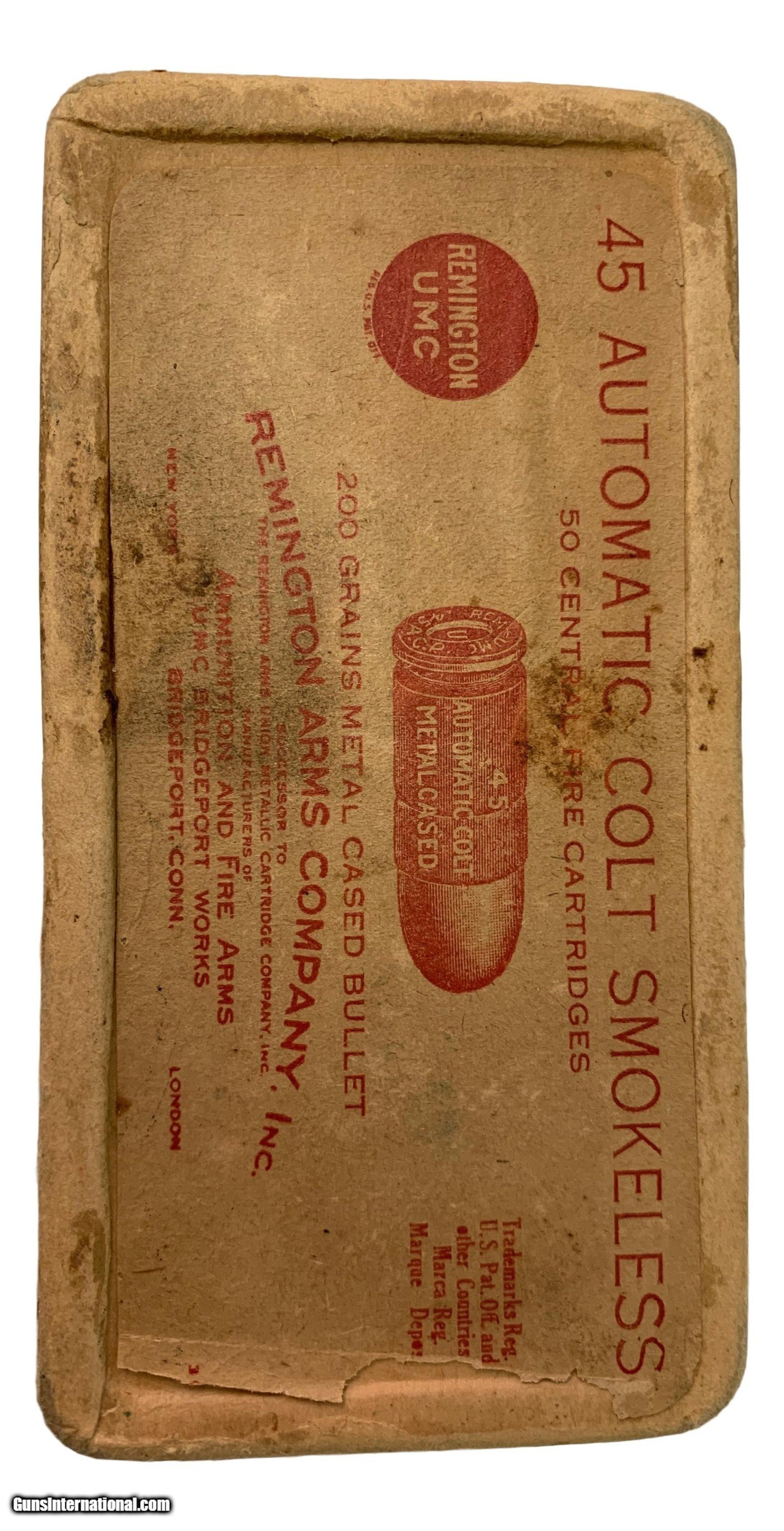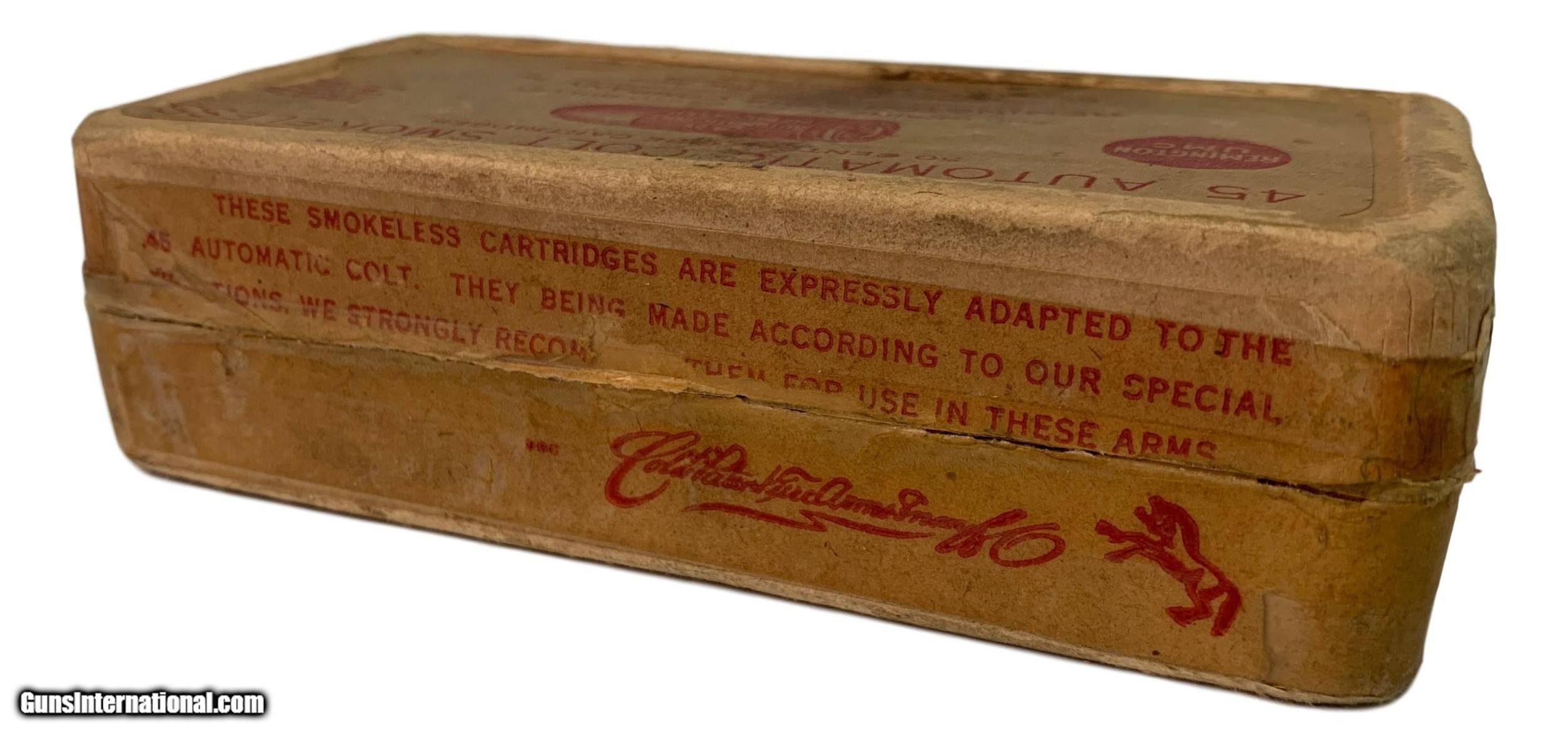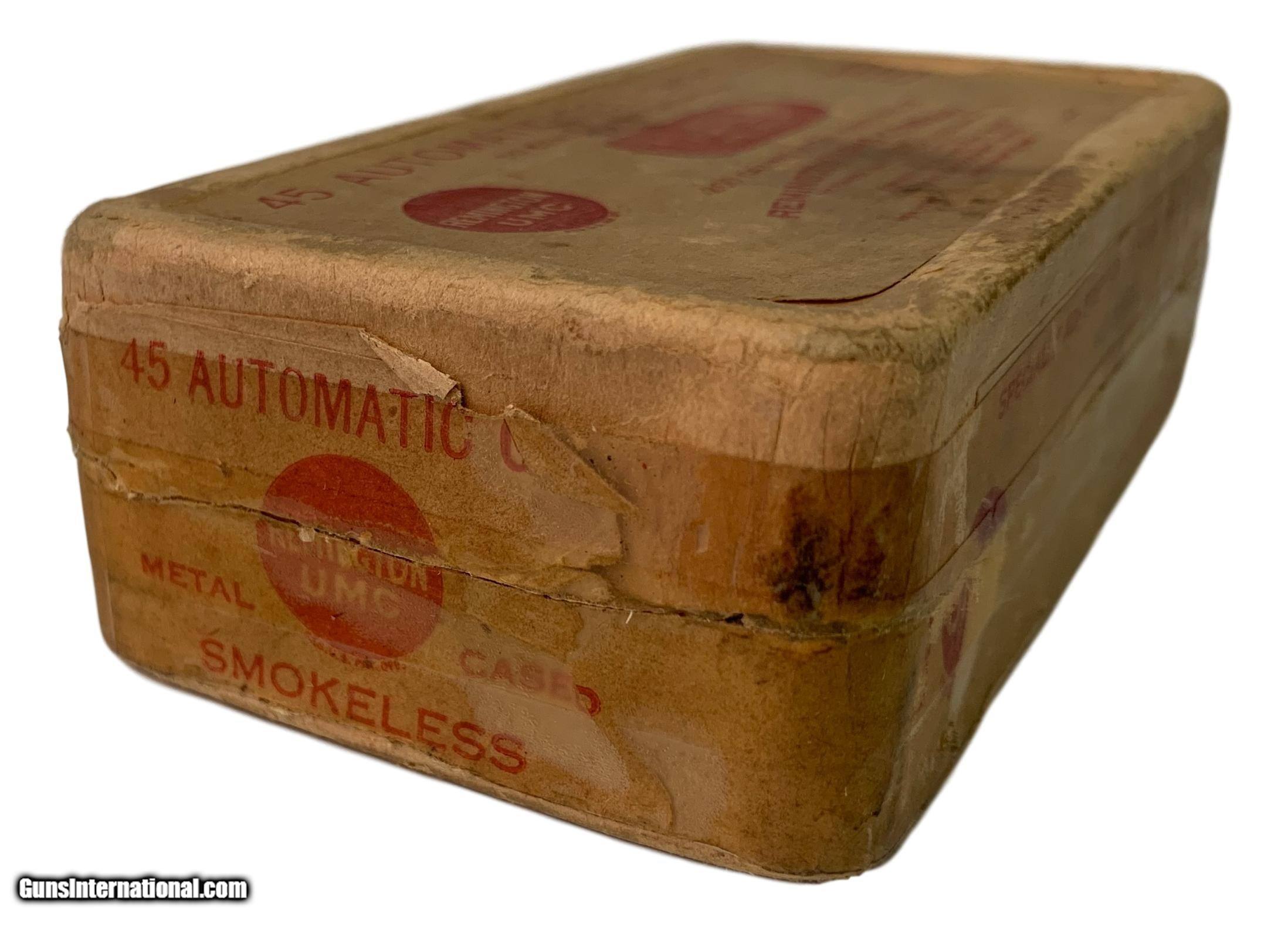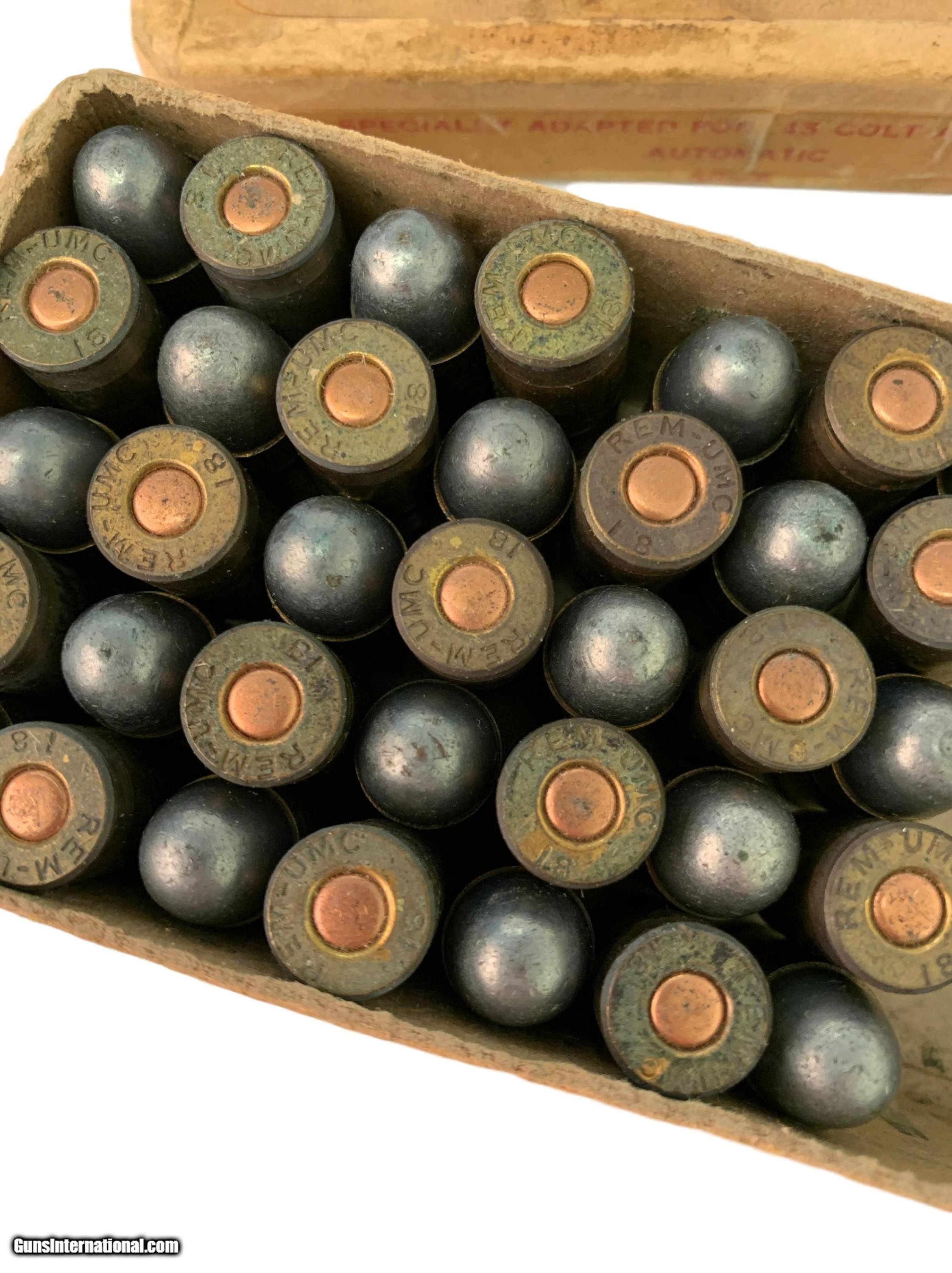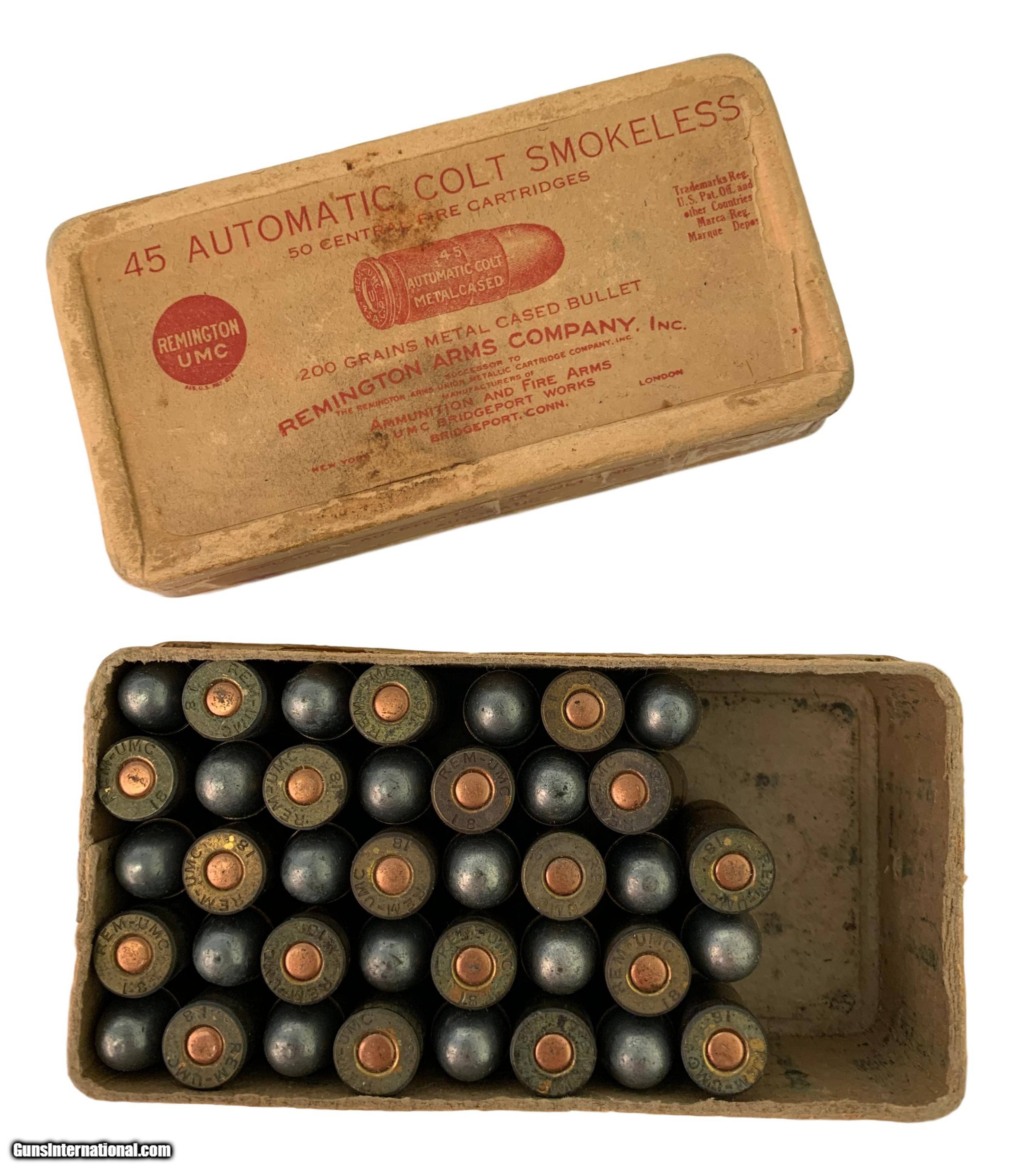 Collectible Ammo Partial Box: WWI 38 Cartridges of Remington UMC .45 Automatic Colt Smokeless for M1911 Dated 1918