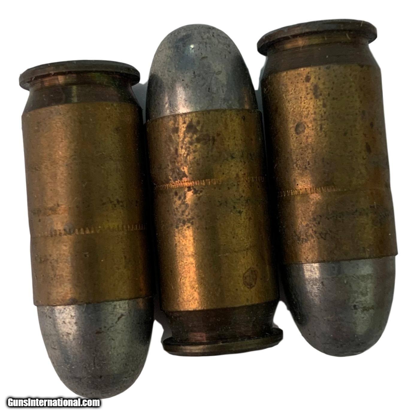 Description: Collectible Ammo Partial Box: WWI 38 Cartridges of .45 Automatic Colt Smokeless for M1911 Dated 1918 Partial box of 38 matching headstamp cartridges. Headstamps are "REM-UMC 18". There is a thin layer of tape on the outside of the box. Please refer to photos for condition details. Please contact us with any questions. This ammo is being sold as a collector's item only and we make no guarantees as to its quality or functionality. Free Shipping To The Lower 48 States Free Local Pick-Up Please know your local laws in regards to purchasing ammunition. There are areas with restricted delivery. We will verify prior to processing your order. California residents pay 7.75% sales tax. We are offering free shipping on this collector ammo. We have a huge quantity of collector ammunition for sale. See our other listings. SOLD |